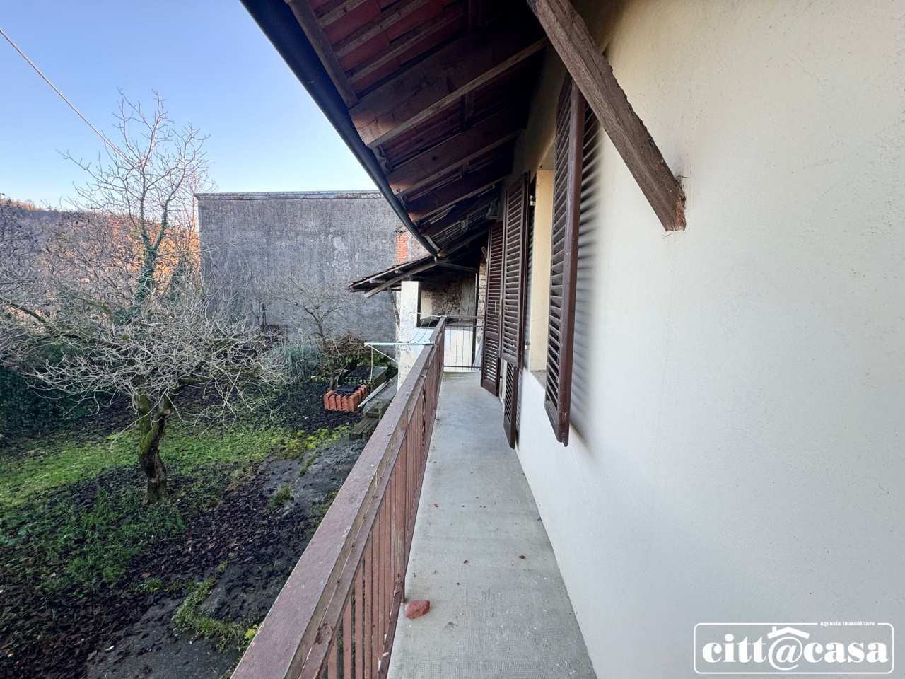 L'abitazione si sviluppa al piano terra da cucina, soggiorno, una camera, cantina e locale di sgombero, mentre al piano primo abbiamo due camere da letto, bagno e un balcone con affaccio sul cortile.