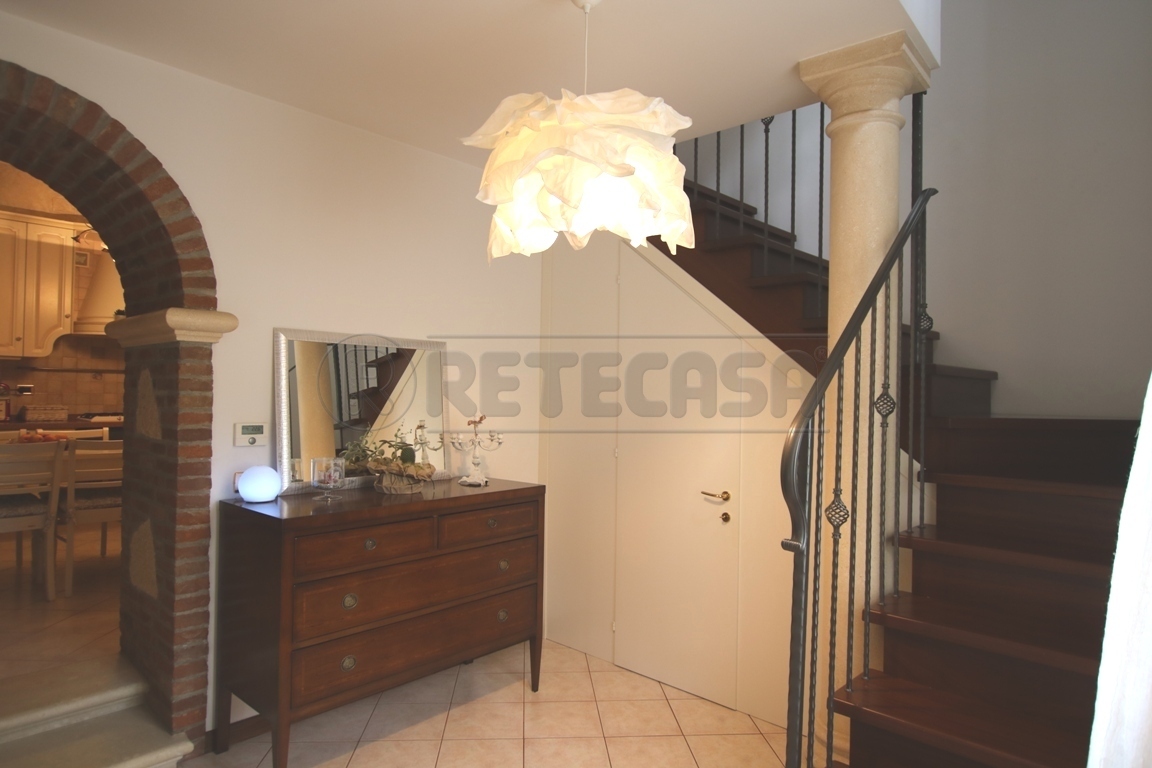 Labitazione, affiancata e disposta su due livelli, si distingue per le ottime finiture e latmosfera calda e accogliente.