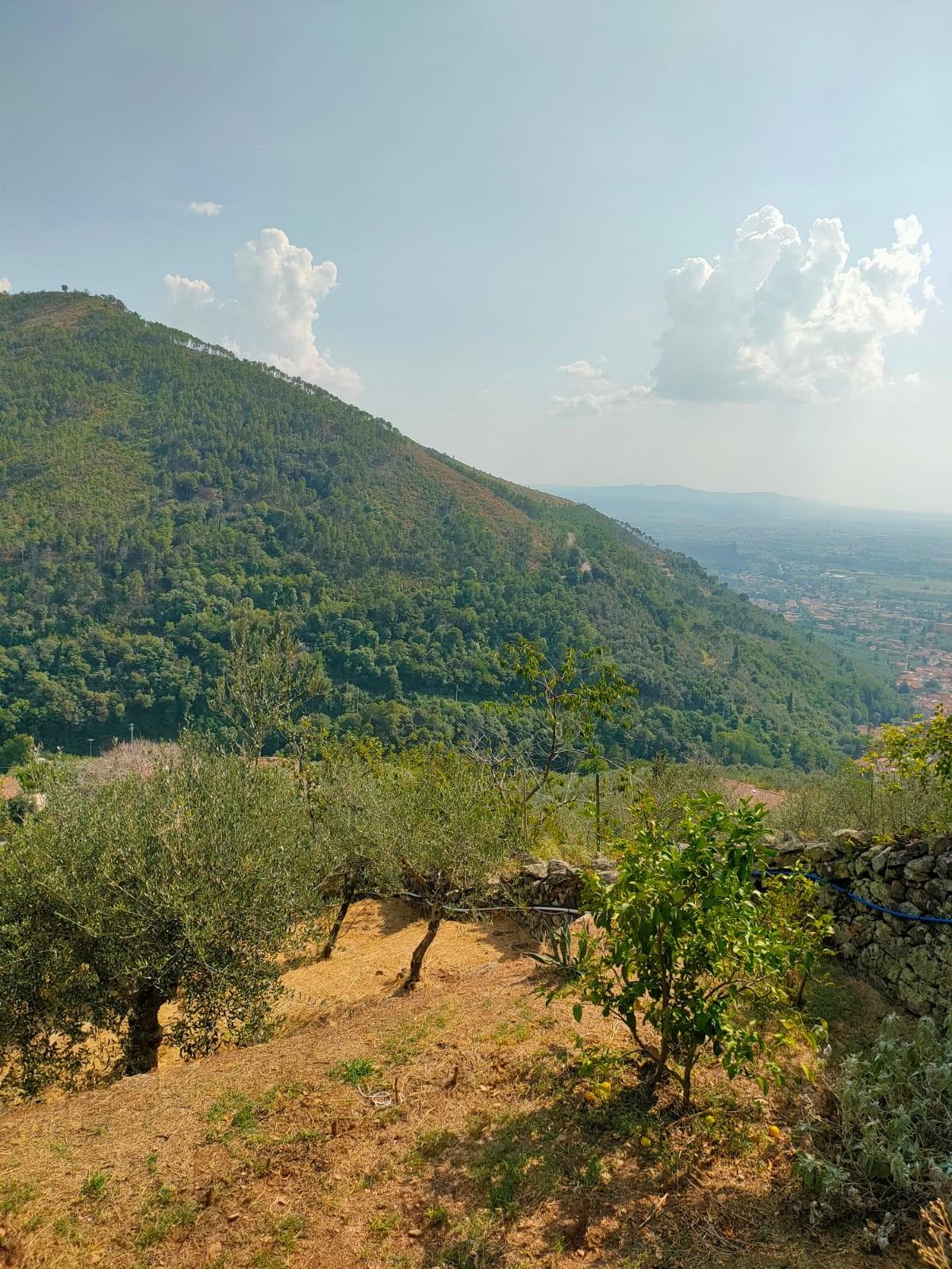 ***.*******.** R2419 - Calci Alto, Casale tipico toscano da ristrutturare, l'immobile, circondato da 16000 mq di terreno a balze con circa 600 piante di olivo ben curate, gode di una vista sulla vallata che ne fa una potenziale location per agriturismo di alto livello, raggiungibile da una strada collinare per metà asfaltata e per metà sterrata che ci conduce fino al cancello di ingresso al resede che si sviluppa nella parte frontale dell'immobile con la vista sul paese di Calci e sulla piana di Pisa, ed è ricoperta da tralci di vite mista fra Sangiovese e Trebbiano, altro vigneto si trova in una porzione alta dell'oliveta, sul resede si affacciano le tre stanze in linea al piano terra, il bagno ed il locale forno, mentre una scala in legno dalla cucina ci porta al piano superiore dove si trovano altri tre locali a tetto con travi e travicelli in legno e mezzane.