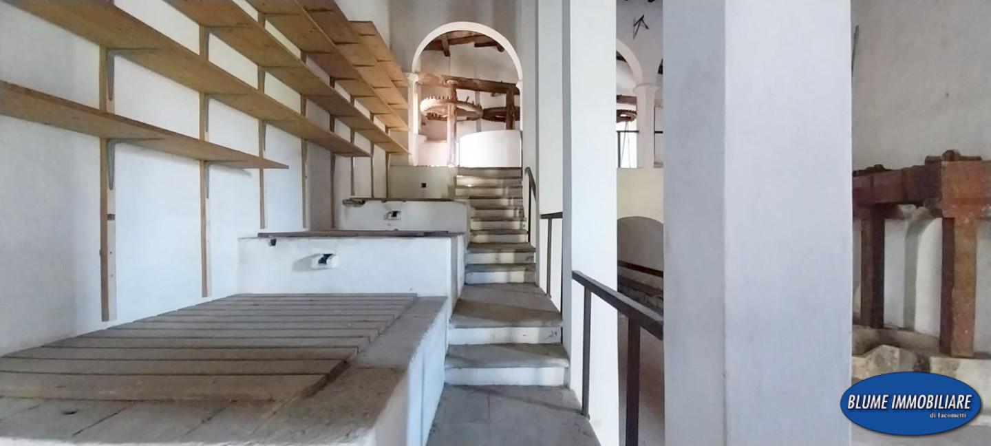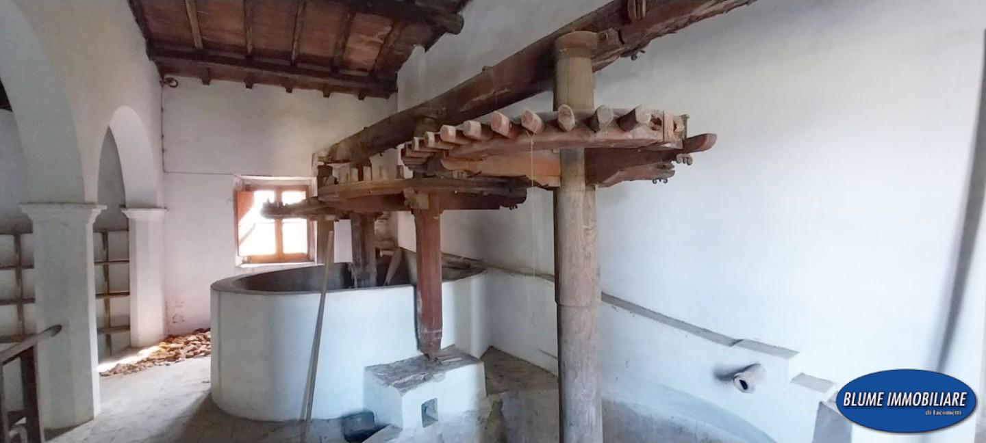 Al primo piano si trova un ampio ballatoio che si affaccia sul frantoio, una porta immette in un grande salone di circa mq.60 con caminetto, una camera matrimoniale ed un bagno con finestra.