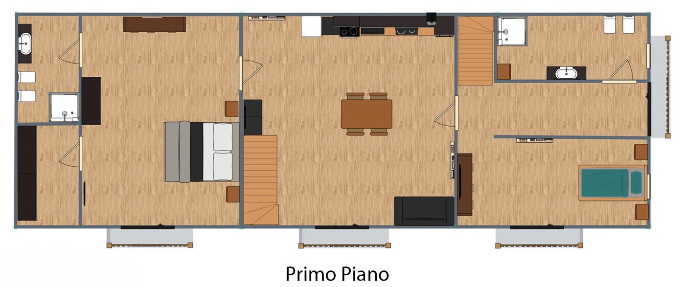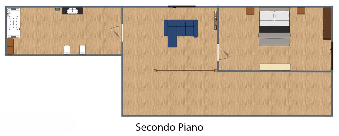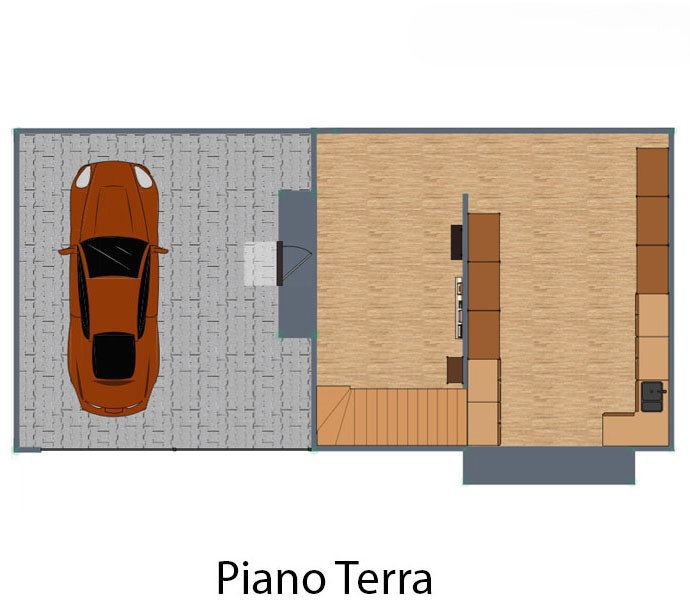 Al piano terra troviamo un ampio ingresso e un locale tecnico per potersi dedicare alle pi svariate attivit dal bricolage alla preparazione di conserve; il primo piano una zona di passaggio da rendere funzionale a proprio piacimento e che ci conduce al secondo livello cos suddiviso: cucina con balconcino, bagno con doccia, disimpegno con sbocco al balcone, stanza da letto con predisposizione per il bagno in camera e un ampio salone con scala per raggiungere la zona living soppalcata.