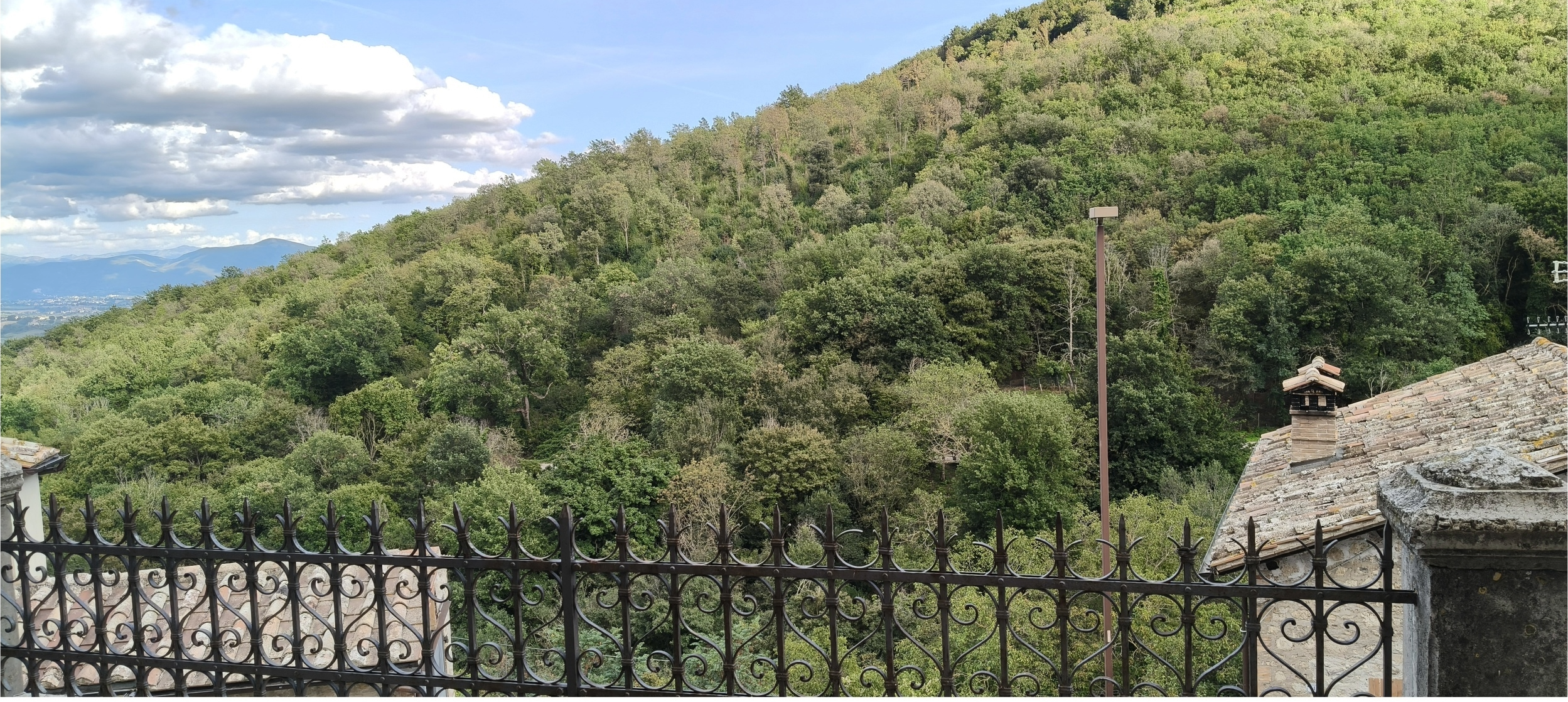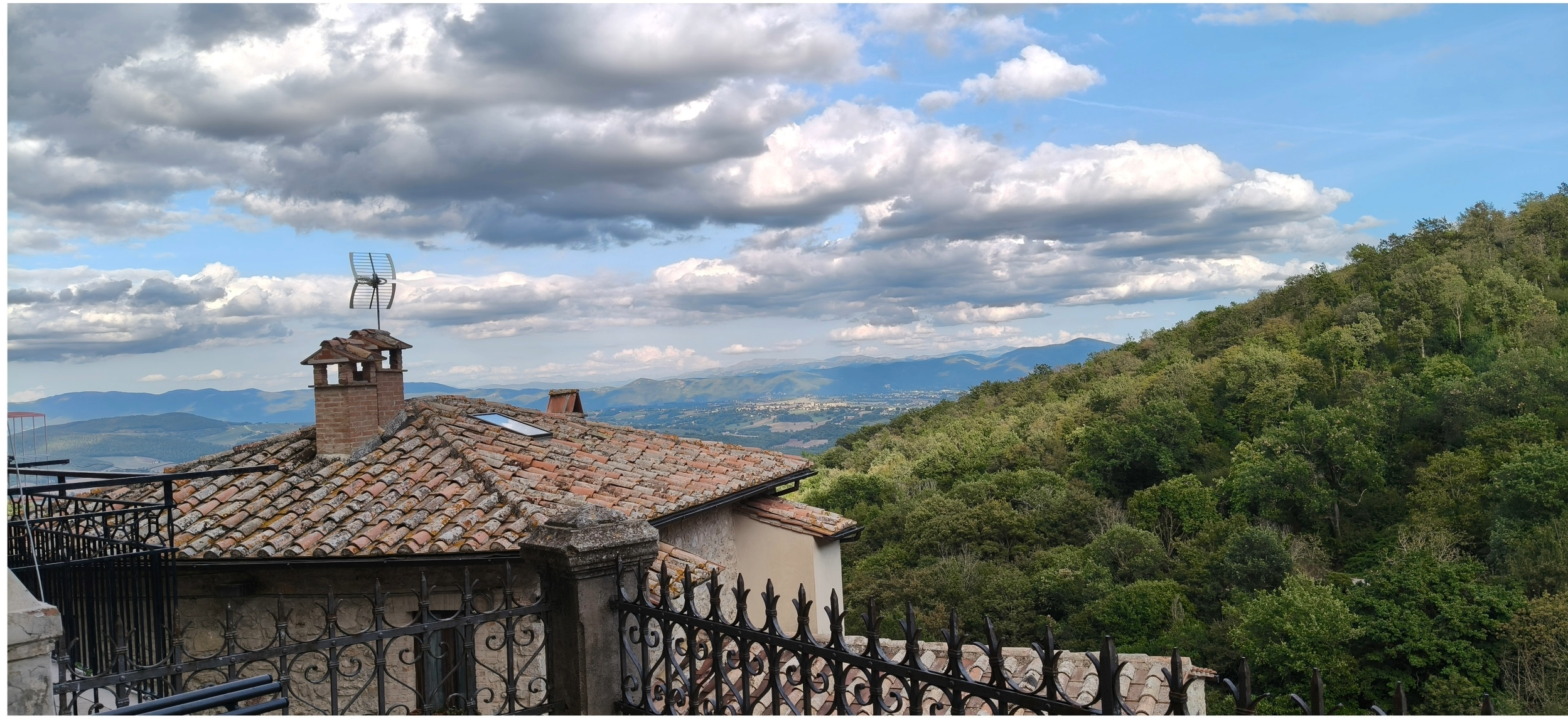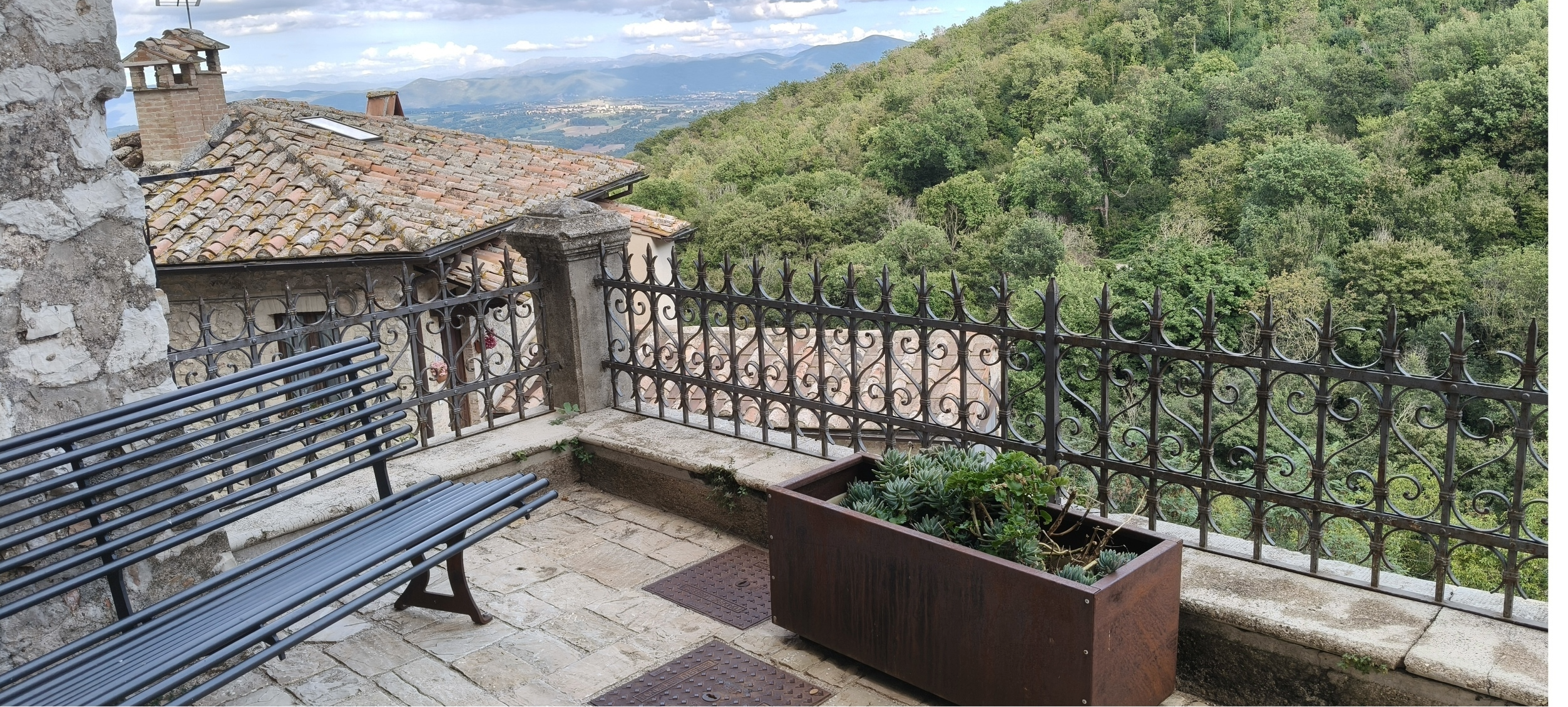 Santa Restituta, uno dei piu' suggestivi e rinomati borghi dell'Umbria, si affaccia su uno strepitoso panorama verde.