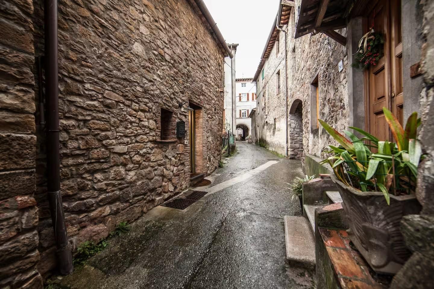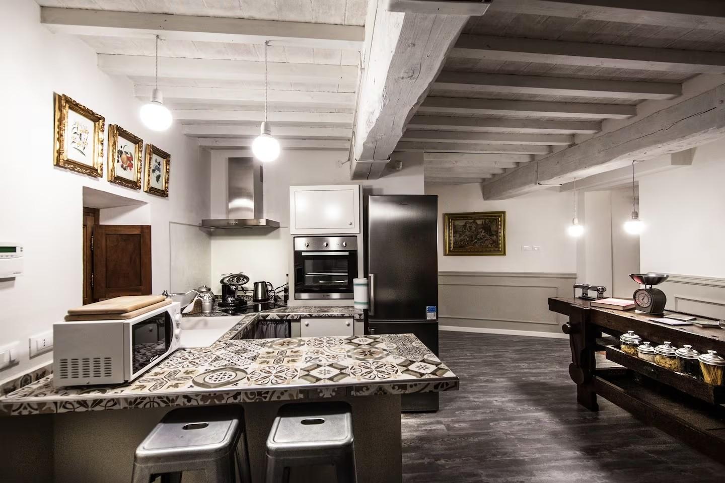 Le finiture rustiche, le travi a vista e i dettagli raccontano la storia del luogo senza rinunciare al comfort moderno.