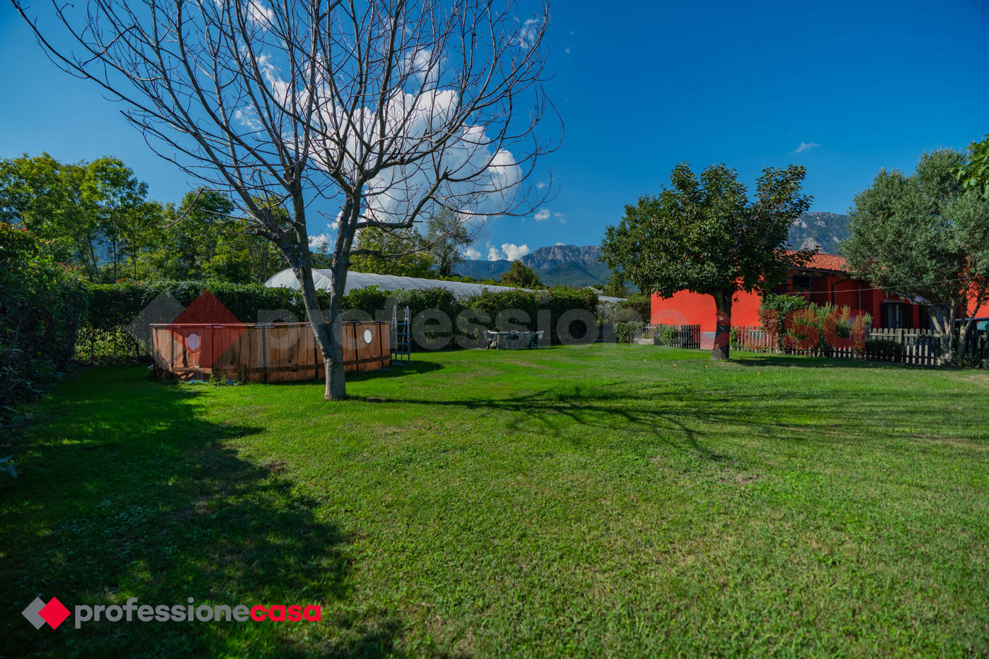 La prima unit abitativa situata al piano terreno cos composta: ingresso living su ampio soggiorno, cucina abitabile, entrambe con sfogo diretto sul giardino, camera da letto matrimoniale, bagno e ripostiglio.