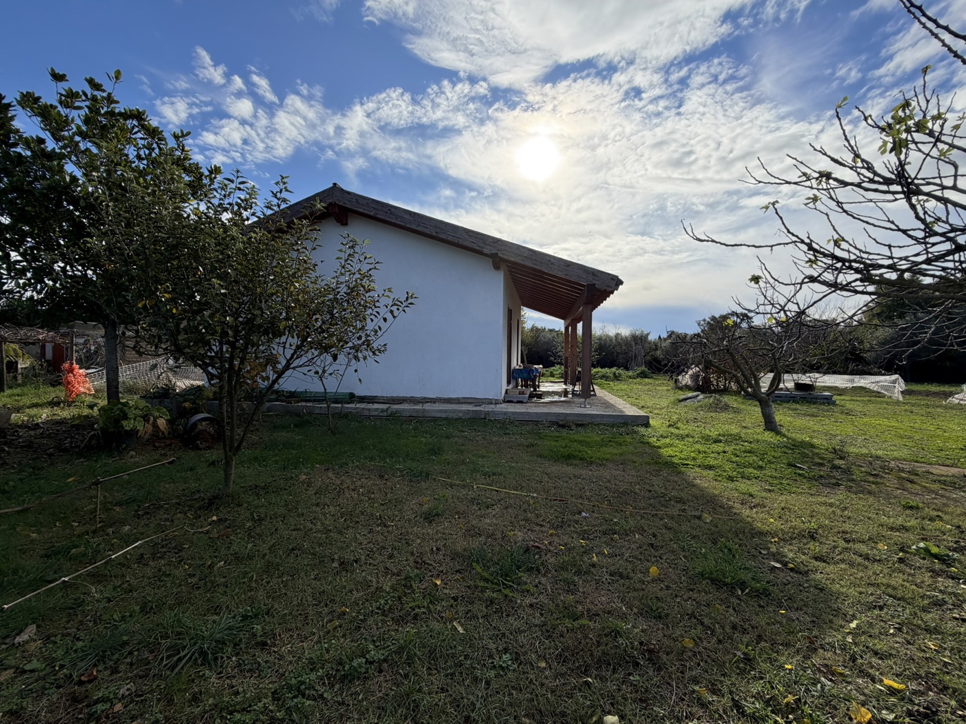 Circondato da un terreno pianeggiante di circa 2940 mq, il casale arricchito da piante di fichi, mandorli, albicocchi, olivi e limoni, creando un'atmosfera incantevole e rigogliosa.