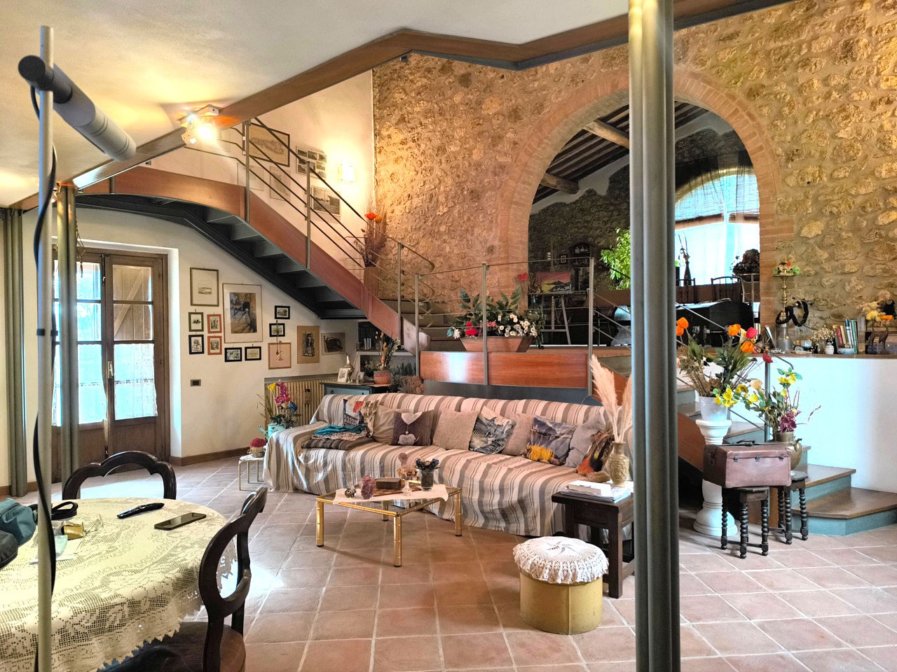 Si sviluppa su due livelli per complessivi 216 mq. ed e composto da ingresso, ampio soggiorno con camino, sala da pranzo, cucina abitabile, ripostiglio e bagno con doccia.