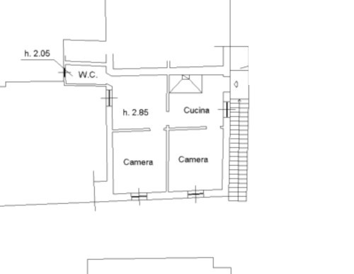 Al piano terra unico vano di 30 mq attualmente destinato a magazzino con uscita diretta sul giardino unibile al sopra previo cambio d uso in civile abitazione: al piano primo, con accesso da scala esterna, appartamento di 52 mq divisi in quattro vani e bagno.
