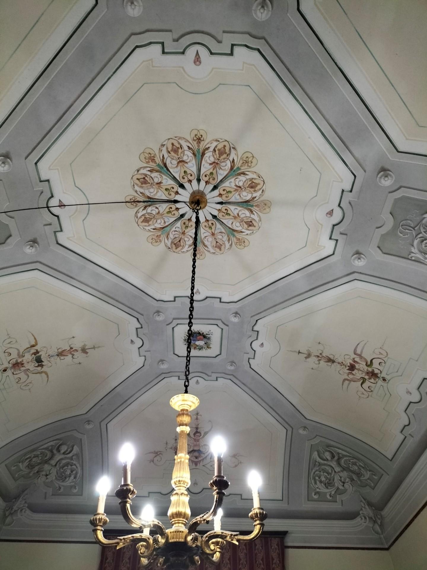 Queste recano decori di repertorio neoclassico come nel motivo a lacunari del salotto per la musica, o di gusto floreale, di pieno ottocento, come negli altri salotti.