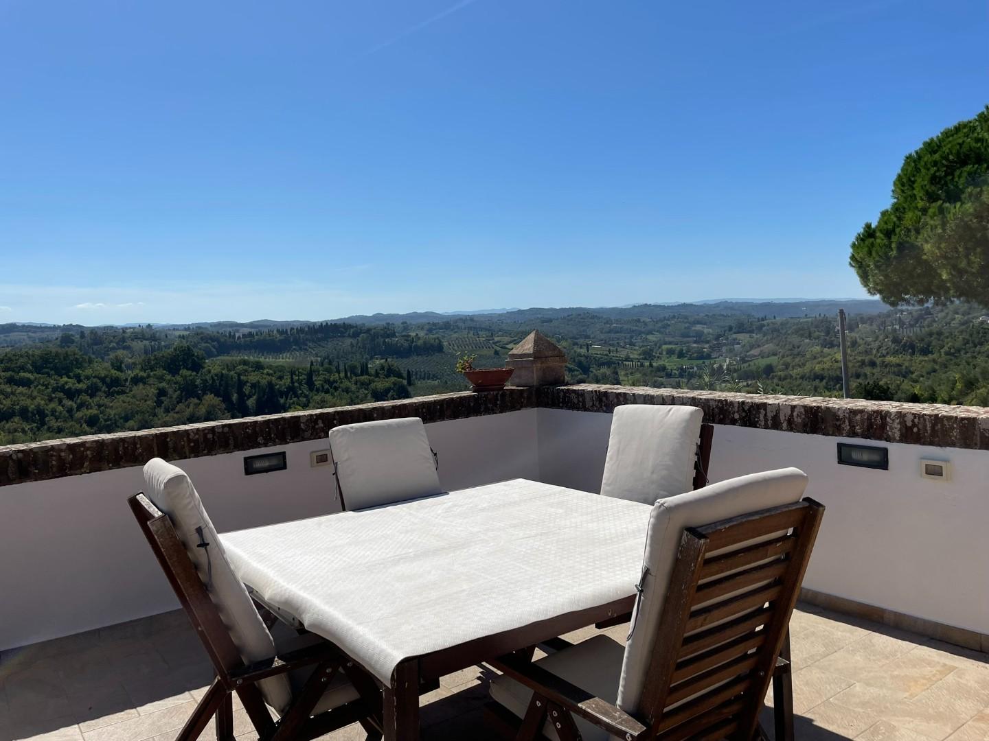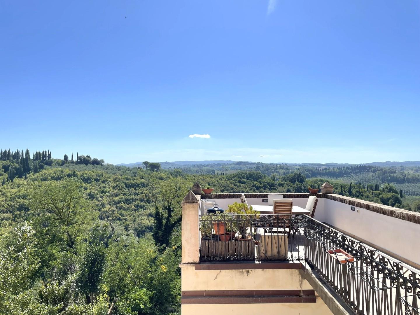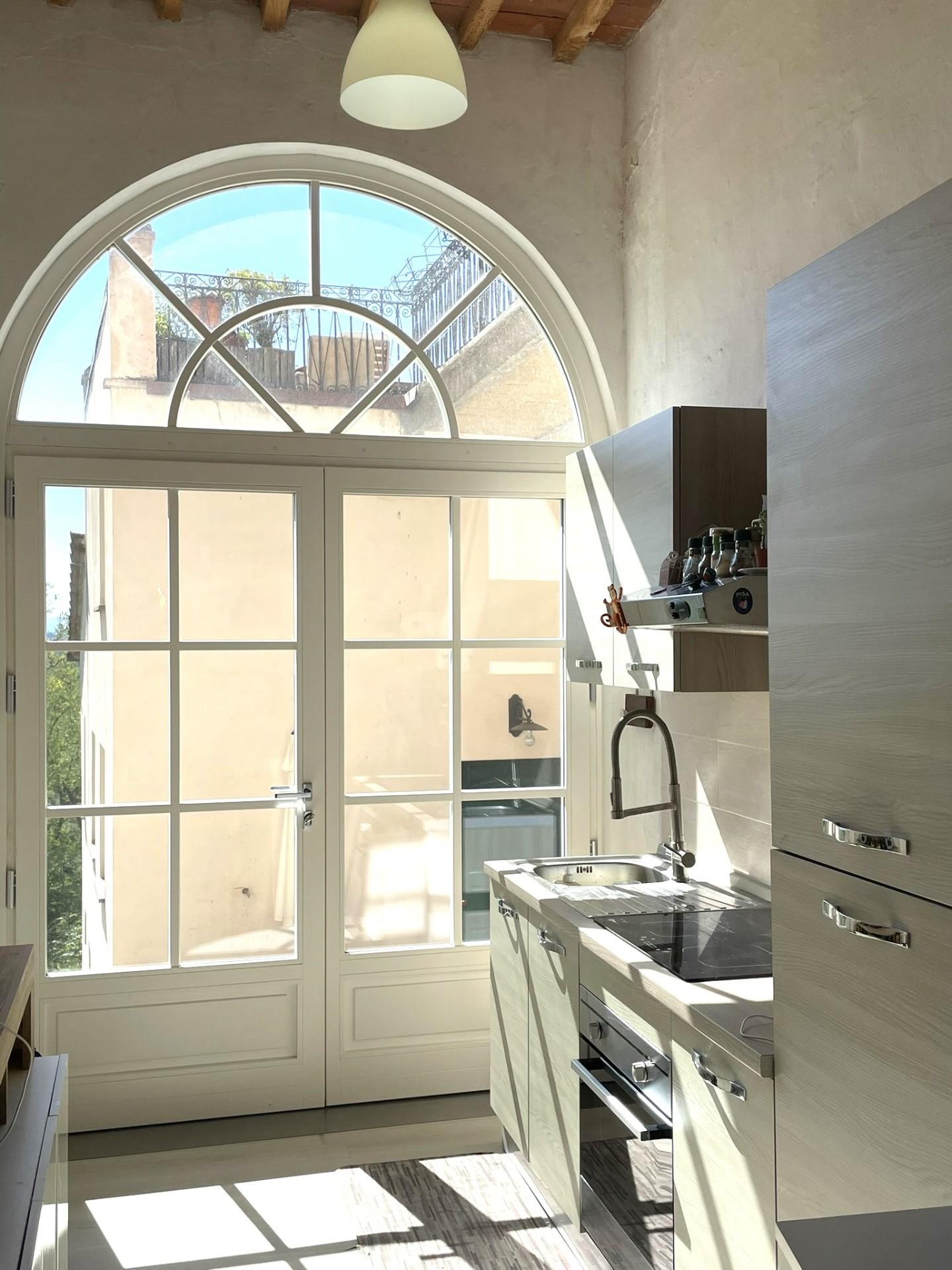 Quest'ultimo, luminoso e spazioso, si collega a una cucina con accesso a un terrazzo panoramico sulla valle di San Miniato, e a due ulteriori stanze.