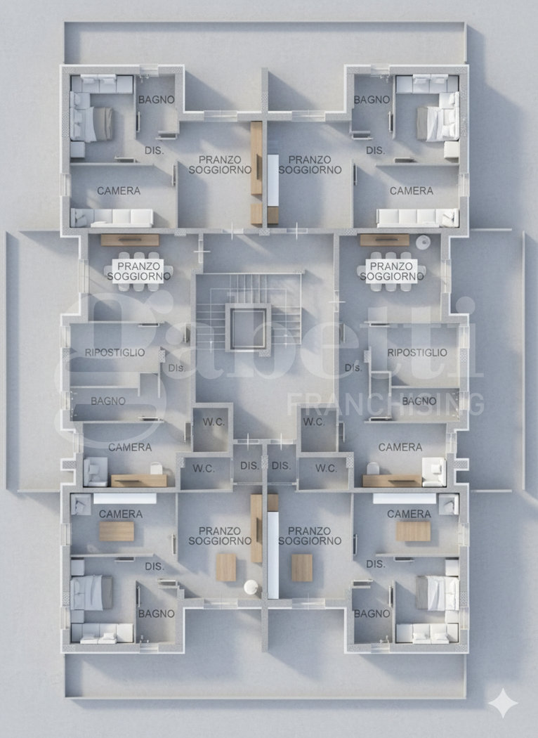 Il complesso si sviluppa su quattro livelli pi il piano terra.