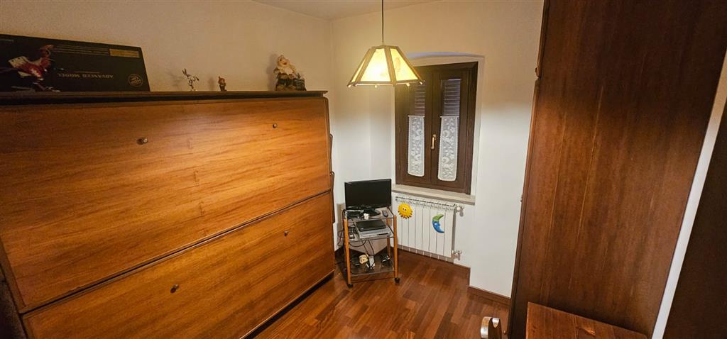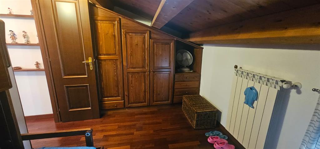 Il secondo piano ospita due camere da letto con armadiature artigianali e una spaziosa sala da bagno.