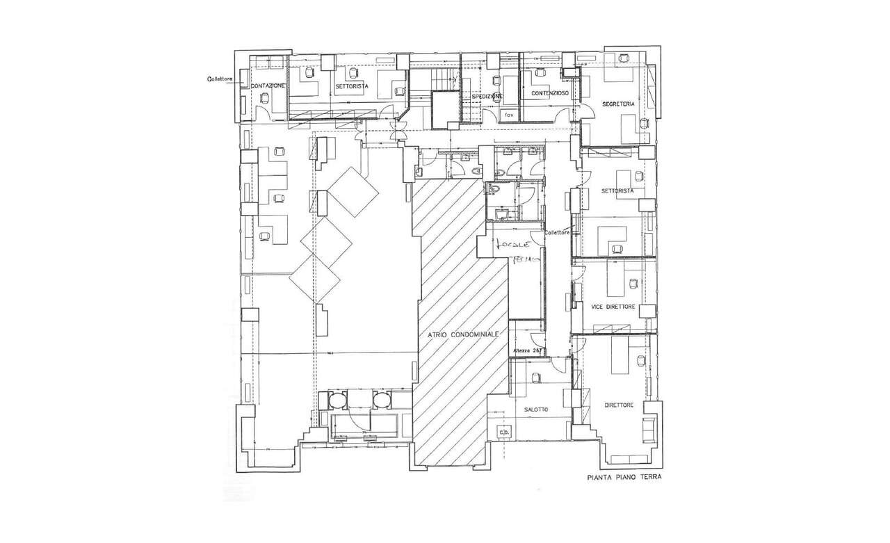Il piano terra si sviluppa come un ampio open space con otto stanze, un locale tecnico, uno stanzino, un salotto e tre servizi, mentre il piano soppalco ospita sette stanze e un ulteriore locale tecnico, offrendo spazi funzionali e versatili.