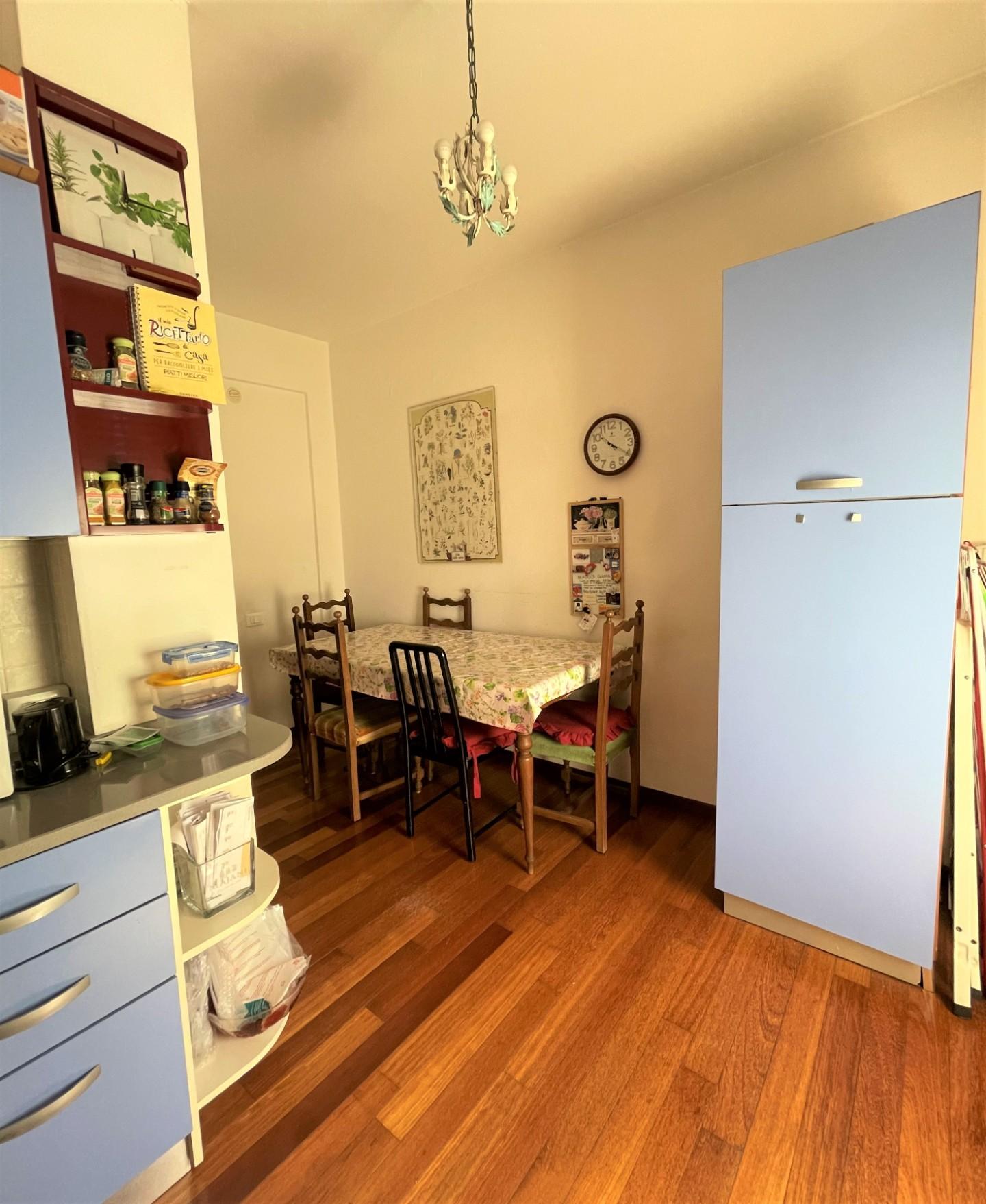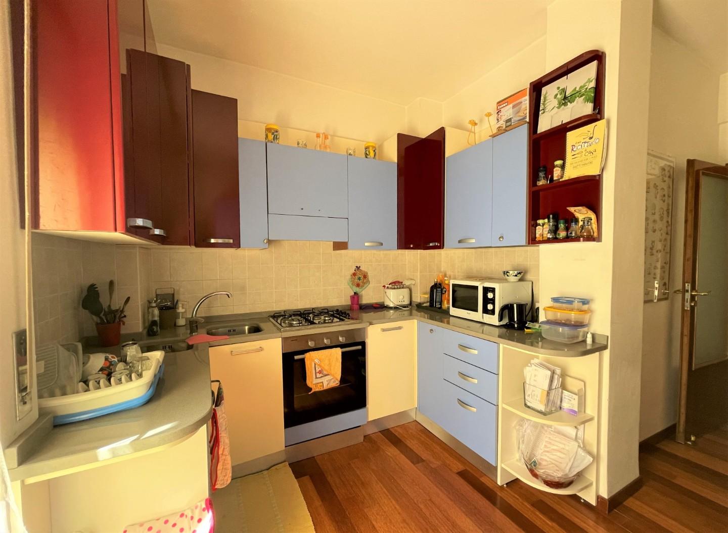 L immobile, luminosissimo ed elegantissimo, è posto al primo piano di un palazzo signorile ben abitato e servito da ascensore; è composto da ingresso, cucina abitabile con accesso al primo balcone, tre ampie camere da letto, di cui due occupate da due ragazze, e bagno finestrato con box doccia.