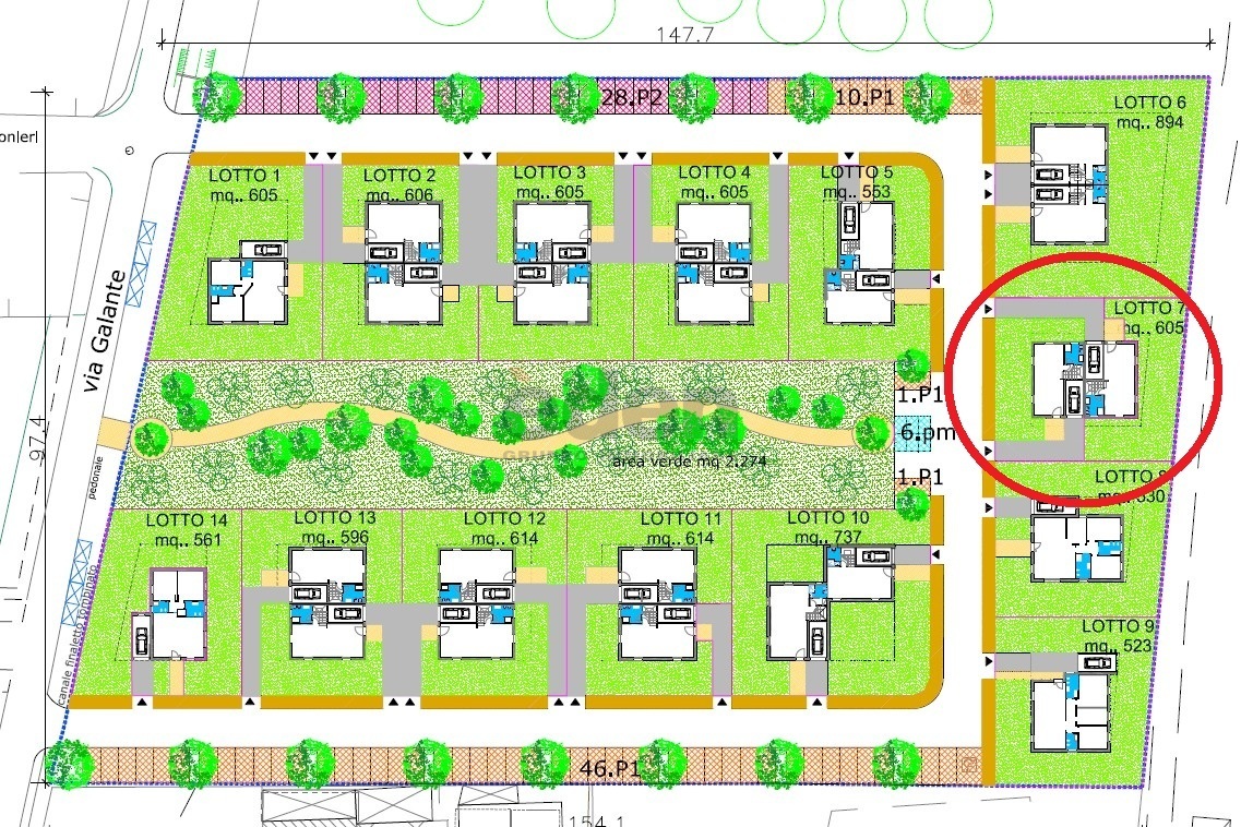 Nell'area verranno costruite ville monofamigliari o bifamigliari oltre a zone destinate ad aree verdi e parcheggi.