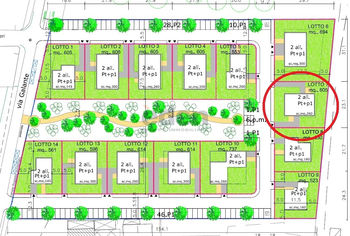 Il lotto in vendita, di circa 600mq, prevede la costruzione di una villa con massimo due abitazioni e relativi accessori.