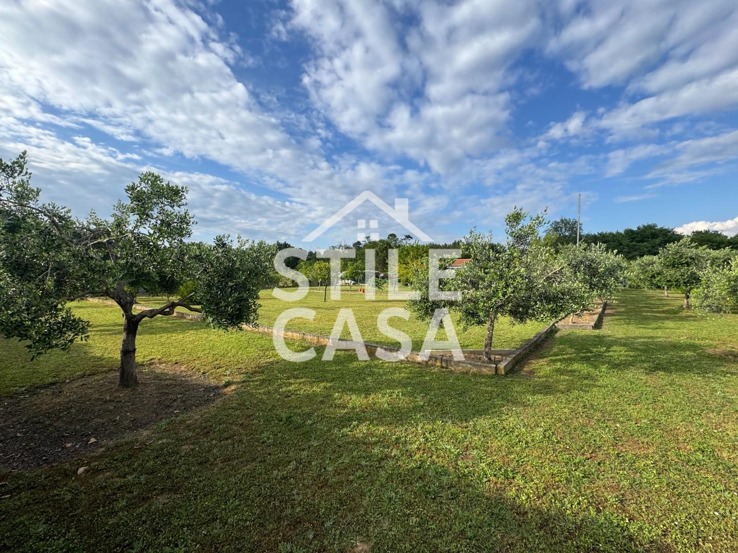 Il terreno è impreziosito da un giardino curatissimo, un grande orto, un pozzo profondo 29 metri perfettamente funzionante e ben 42 piante di olivo, oltre a alberi da frutto che regalano colori e sapori autentici in ogni stagione.