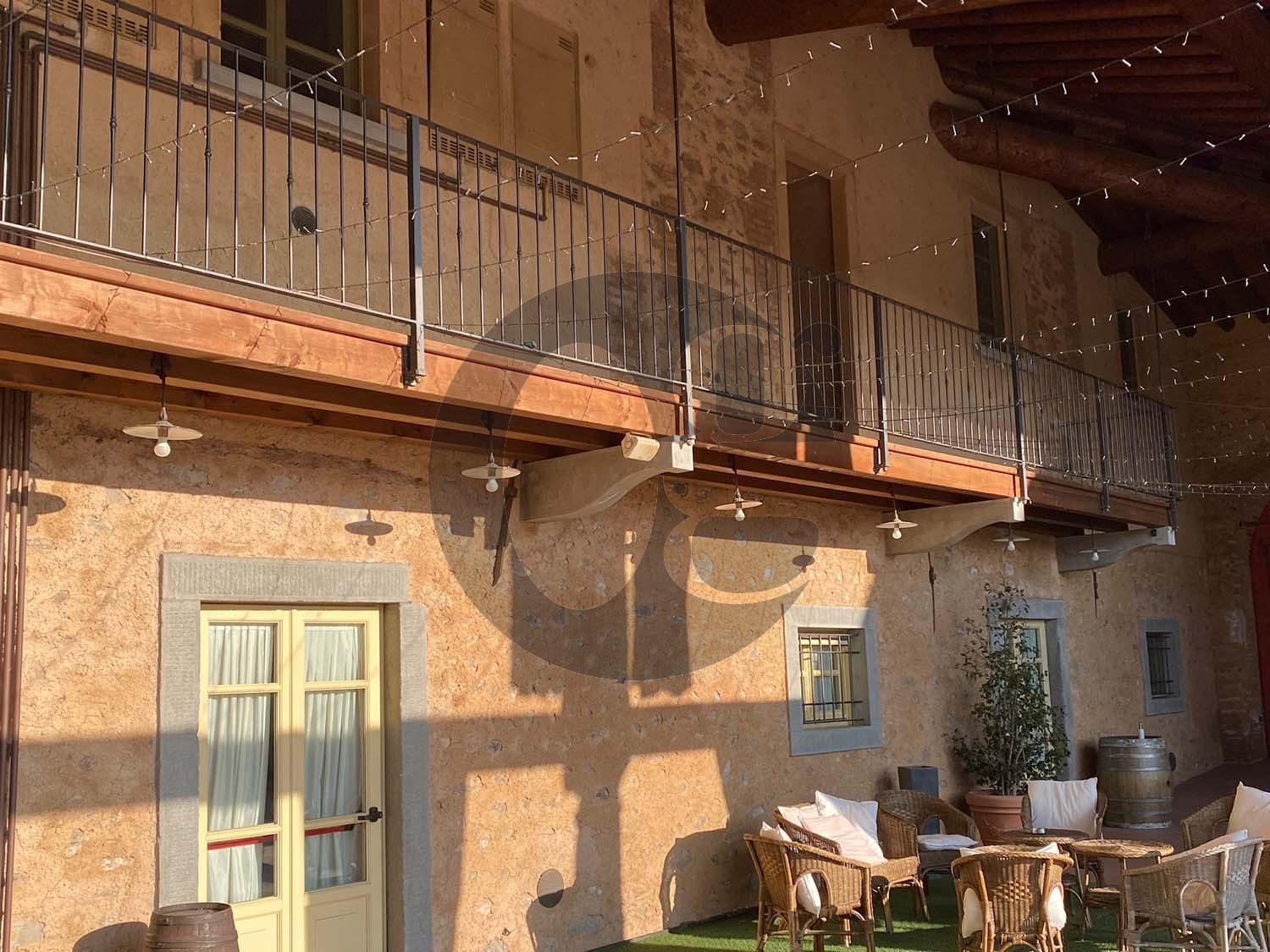 Il cascinale, risalente ad epoche diverse, sapientemente ristrutturato in ogni sua minima parte dalla proprietà, copre una superficie di 1.000 mq. oltre ai porticati e loggiati.