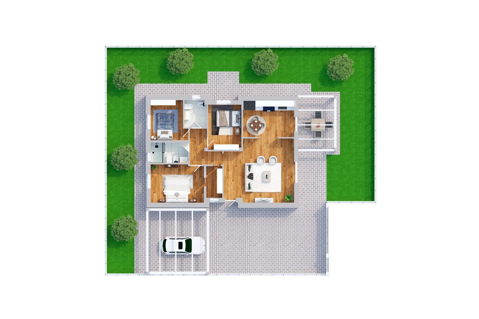 Labitazione sarà circondata da circa 700 mq di giardino, con posti auto interni alla proprietà. Contesto soleggiato, riservato e con ottima privacy. Contatta l'inserzionista