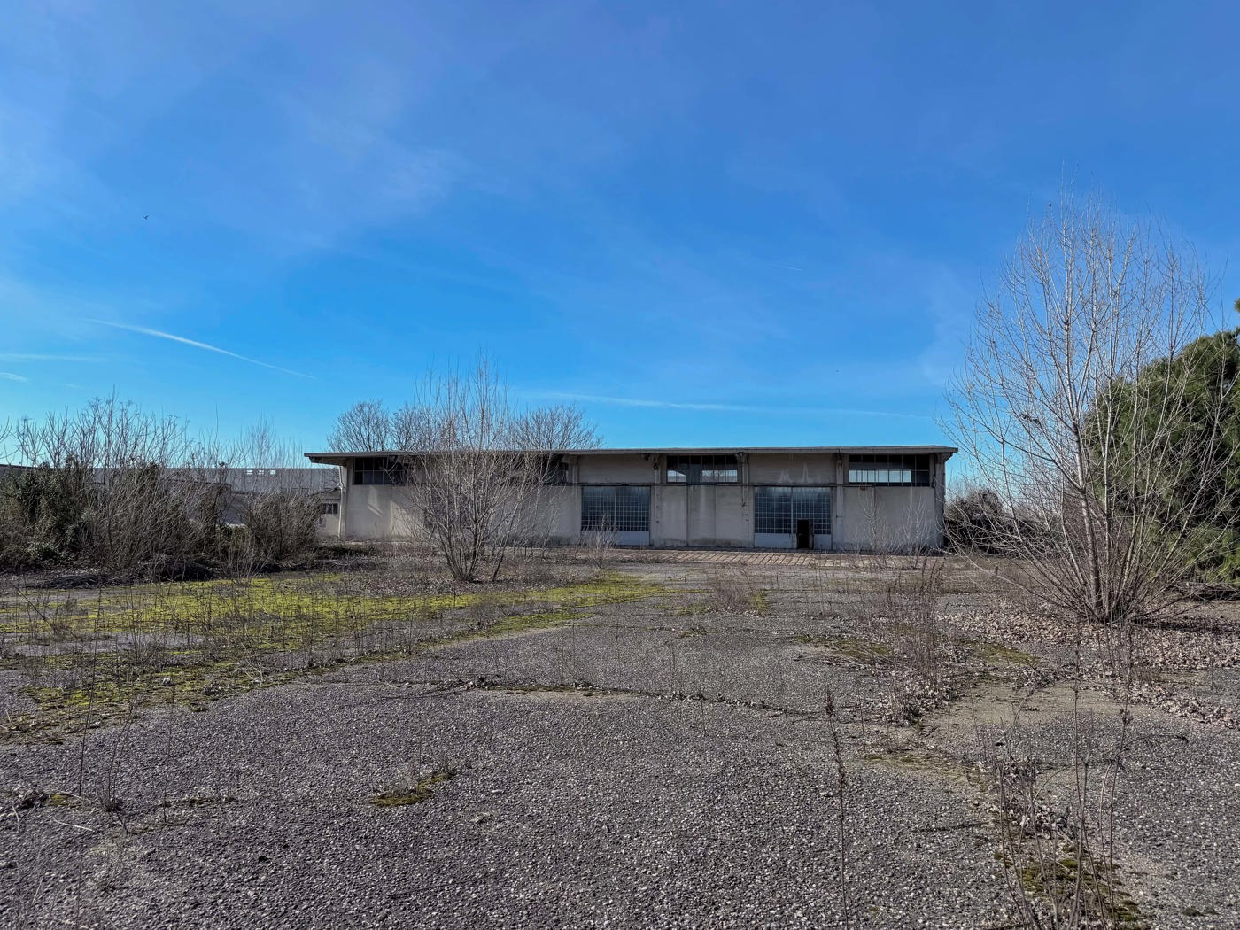 Attuale superficie coperta di circa 1.870 mq distribuita su 2 fabbricati e superficie scoperta di circa 7.360 mq gi parzialmente asfaltata e tombinata, con potenzialit edificatorie.