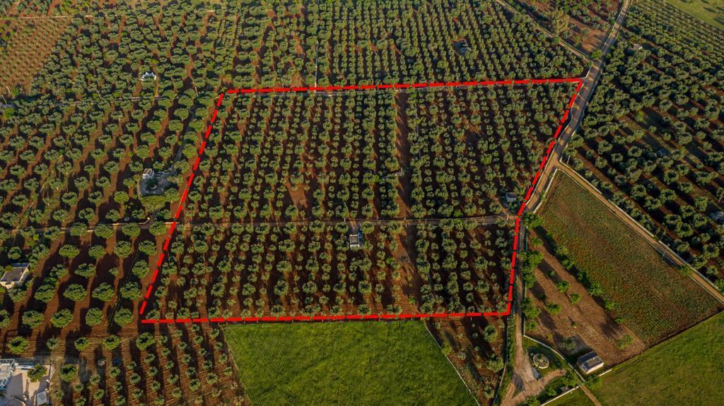 Con una metratura complessiva di 50000mq il terreno si suddivide in due lotti di pari grandezza, con due pozzi artesiani e un uliveto con 9000 alberi di ulivo.