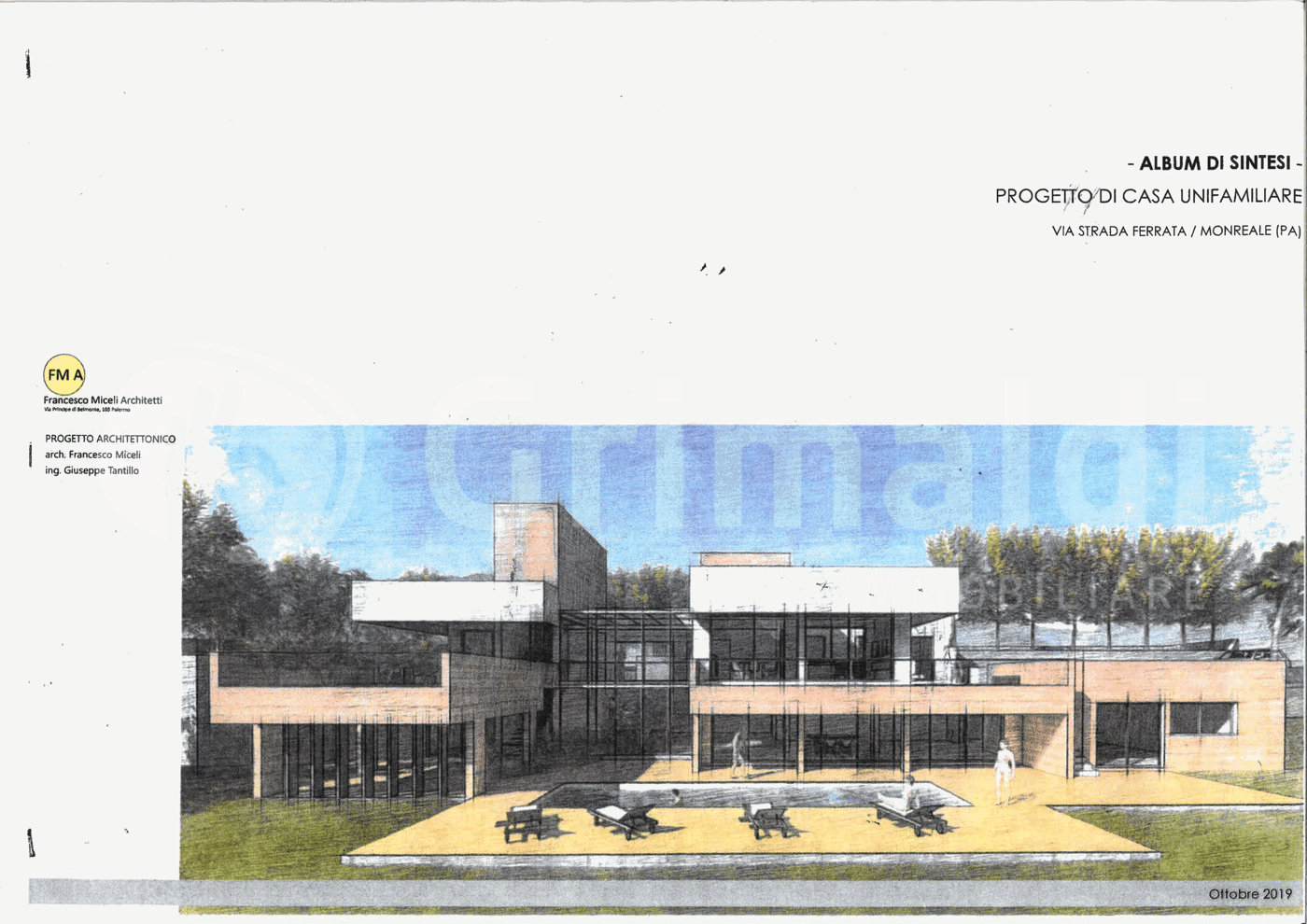 Il progetto prevede una villa unifamiliare composta d: ampio S/1 di mq 500 c.a. ed un piano rialzato di mq 150 c.a.. Posizione molto panoramica sulla Conca DOro, tra il Duomo di Monreale e la circonvallazione.