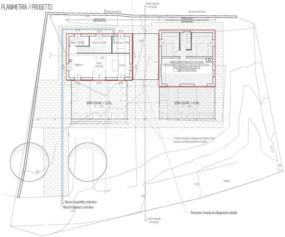 Caratteristiche del Progetto: Le due unità abitative saranno indipendenti sia dal punto di vista urbanistico che catastale, collegate elegantemente da un porticato architettonico.