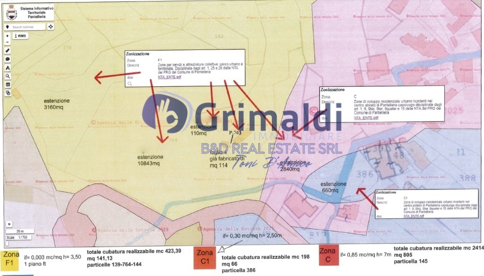 L'intera area ricade nelle zone "C" - "C1" - "F1" del P.R.G. del comune di Pantelleria, vale a dire unarea gi inserita nel tessuto urbano e pensata per espansione prevalentemente residenziale, turistica e di servizi.