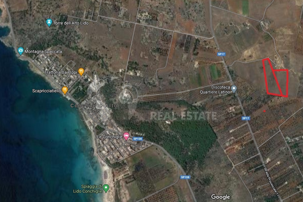 Tra Gallipoli e Porto Cesareo, poco distante dal mare, Vendesi terreni edificabili, per un totale di ca. 53.000 mq. Sui terreni è possibile realizzare: - residenze turistiche organizzate in villaggio turistico attrezzato; - impianti sportivi e di tempo libero (equitazione, tennis, piscine e relativi servizi, ecc.); - strutture di ristoro e per lo spettacolo (bar, ristorante,discoteche, Pub, ecc.); - aree attrezzate per il gioco dei bambini; - strutture destinata al turismo sociale (casa vacanze ostello); Può essere prevista la realizzazione e la trasformazione di manufatti esistenti nonché la costruzione di nuovi manufatti per la destinazione di attività sportive e di tempo libero, gioco per bambini e anche di ritrovo e spettacolo, quali: discoteche, Pub ecc., nonché bar, ristoranti, ecc. Indici urbanistici ed edilizi: - Indice di fabbricabilità territoriale: 0,5 mc./mq.; - Indice di fabbricabilità fondiario: 1,00 mc / mq.; - Rapporto ci copertura: 15 % del lotto; - Altezza massima: m. 5,00; - Distanza minima dalle strade: Non inferiore a m. 20,00 e comunque nel rispetto dei minimi stabiliti, in relazione alla classificazione della strada - Distanza minima dai confini del lotto: m. 5,00; - Distanza tra fabbricati: non inferiore allaltezza del corpo di fabbrica più alto, con un minimo assoluto di mt. 10,00; - Superficie destinata a parcheggio, anche non coperto, non inferiore a mq. 30,00 metri cubi per ogni abitante da insediare; - Aree da destinare ad attività sportive, culturali, sociali, sanitarie, per pubblici servizi, negozi, ecc. : mq. 40,00 per abitante da insediare.