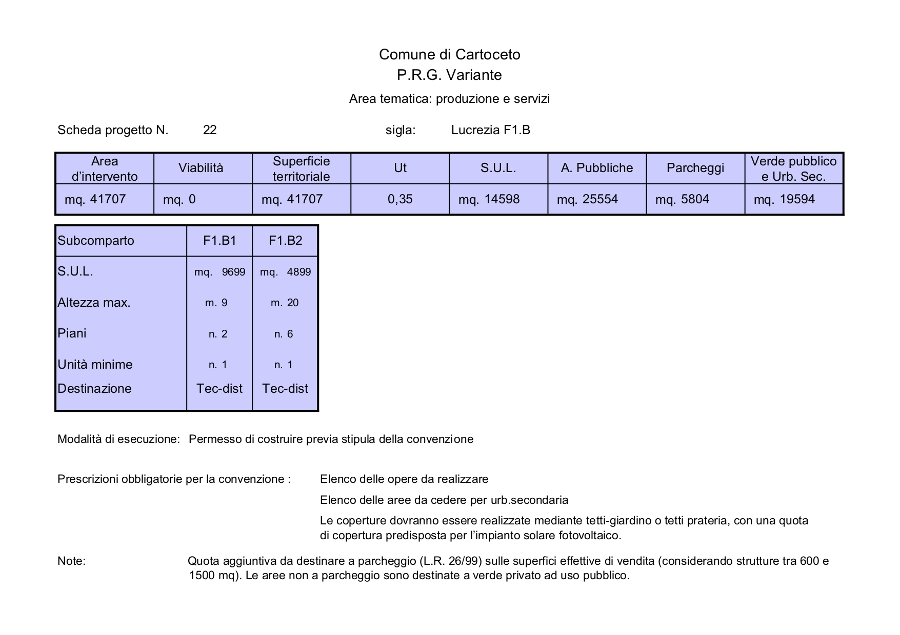 Il lotto consente la realizzazione di immobili per una superficie utile lorda (SUL) di 11.771 mq da destinare ad attività commerciali all'ingrosso, esposizioni, depositi in genere, rappresentanza, studi, uffici, banche, bar, ristoranti, discoteche, alberghi, attività sportivo-ricreative oltre attività commerciali al minuto e attività artigianali di servizio.
