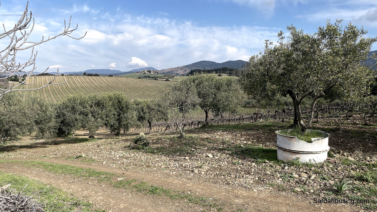 Vigneto e Oliveto Sa Misa -- parte di azienda biologica in produzione --- La proprietà Sa Misa si trova nell'agro di Soleminis, tranquillo paese a 15 Km da Cagliari.