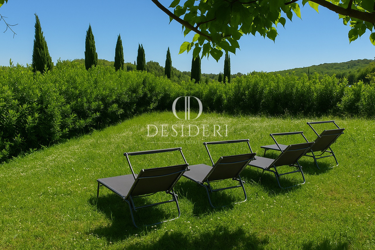 La proprietà si estende per circa 12 ettari così suddivisi: 3 ettari di vigneto, con impianti delle varietà Sangiovese, Alicante, Merlot, Syrah e Cabernet Sauvignon; 9 ettari di terreno seminativo e a pascolo, ideali per l'eventuale impianto di oliveti o per altre coltivazioni tipiche della zona. L'azienda vanta la certificazione biologica, elemento che garantisce l'accesso a mercati di qualità con ottime prospettive di redditività, oltre a contributi PAC (Politica Agricola Comune) particolarmente vantaggiosi, legati sia alla conduzione biologica che alla tipicità del prodotto e del territorio.