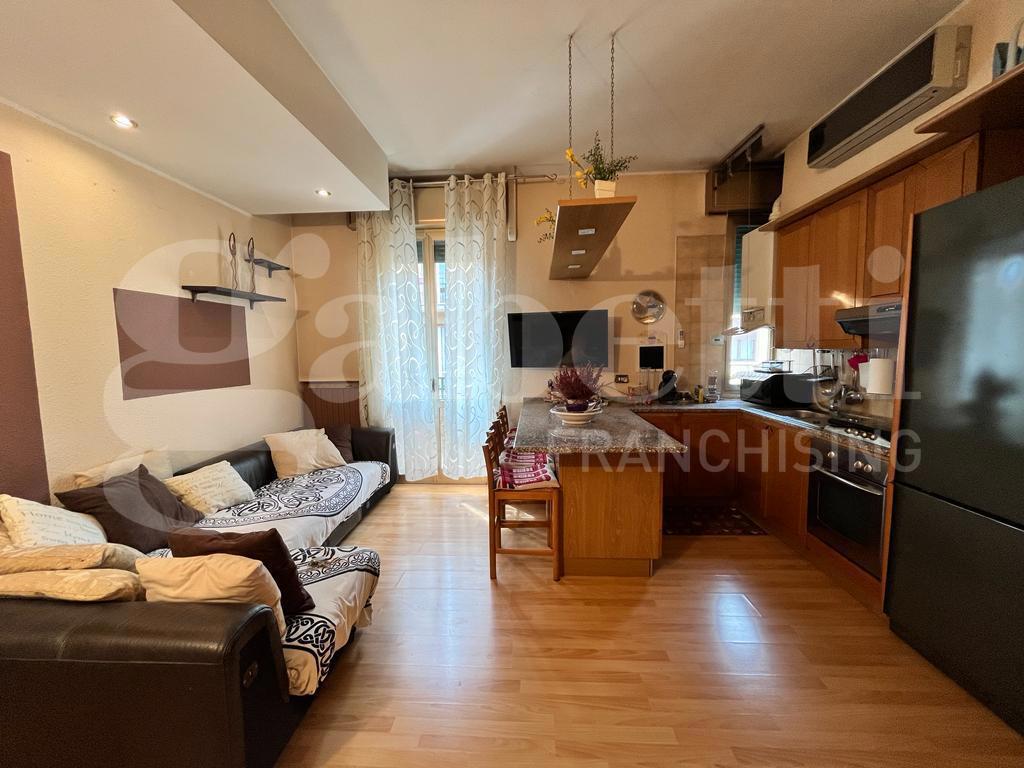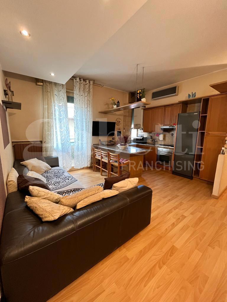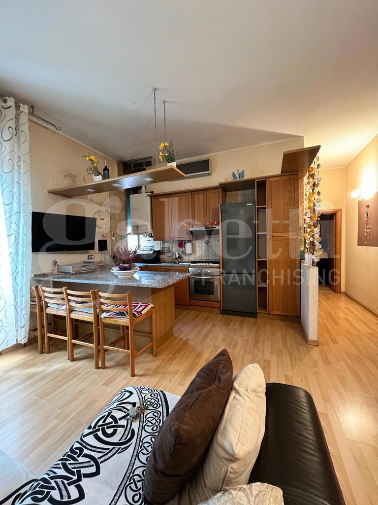 L'immobile composto da ingresso su soggiorno con angolo cottura, balcone, due camere matrimoniali e bagno.