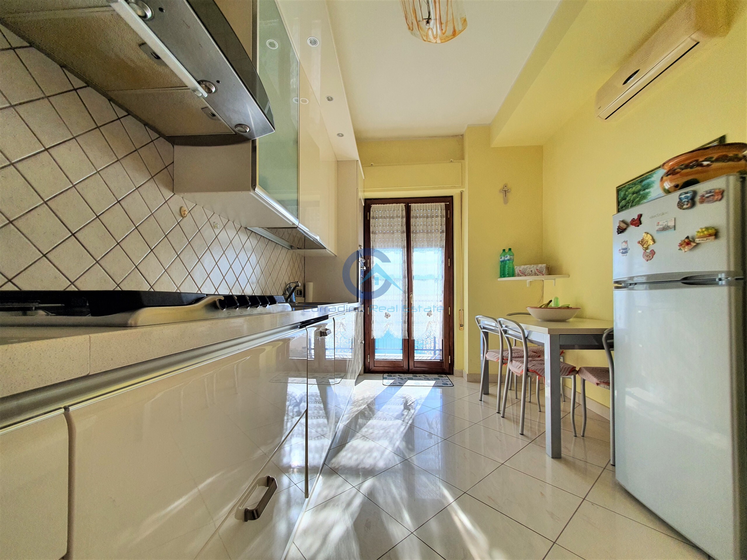 All'interno è composto da: ingresso su soggiorno con accesso al balcone con splendida vista panoramica sul mare, cucina con annessa lavanderia, due camere da letto, bagno con doccia e vasca idro. Dotato di ambienti climatizzati.