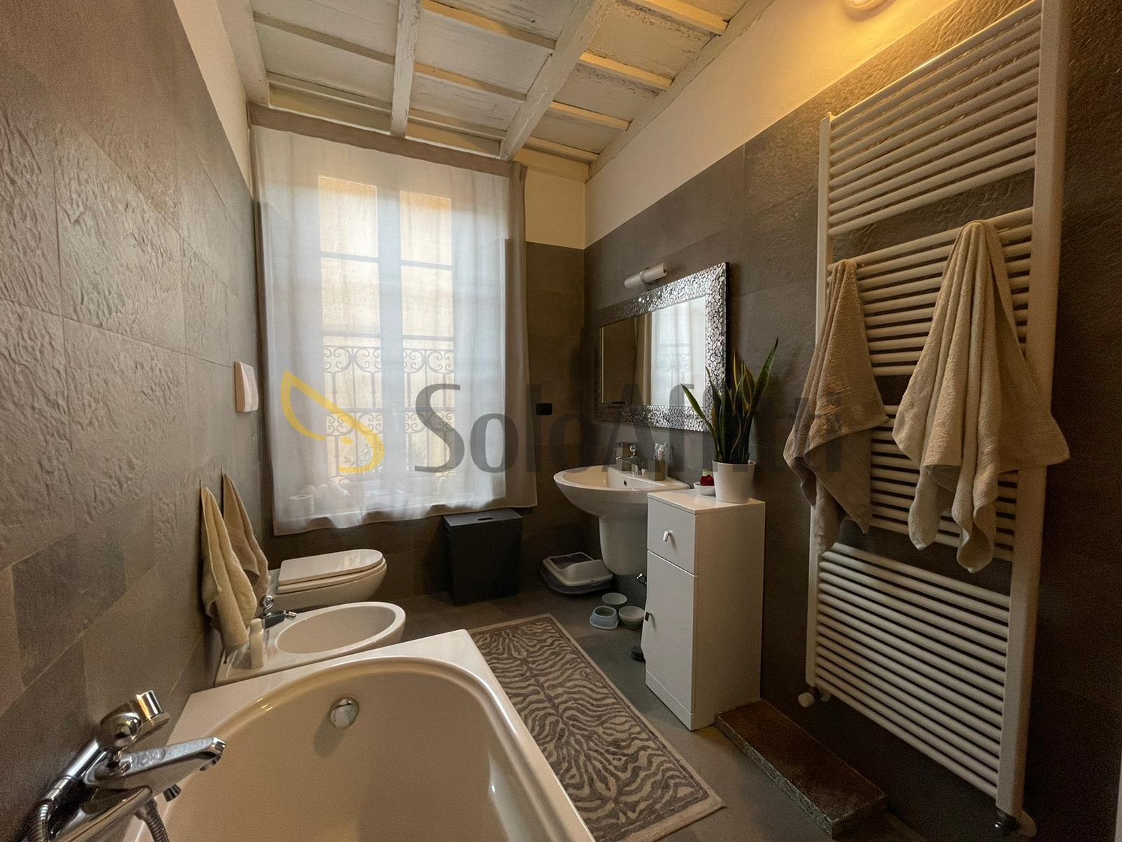 L'appartamento affaccia sulla zona pedonale da un lato e su una splendida corte interna dall'altro ed è così composto : soggiorno con sala da pranzo, angolo cottura, disimpegno, bagno con vasca, camera matrimoniale, seconda camera e secondo bagno con doccia.