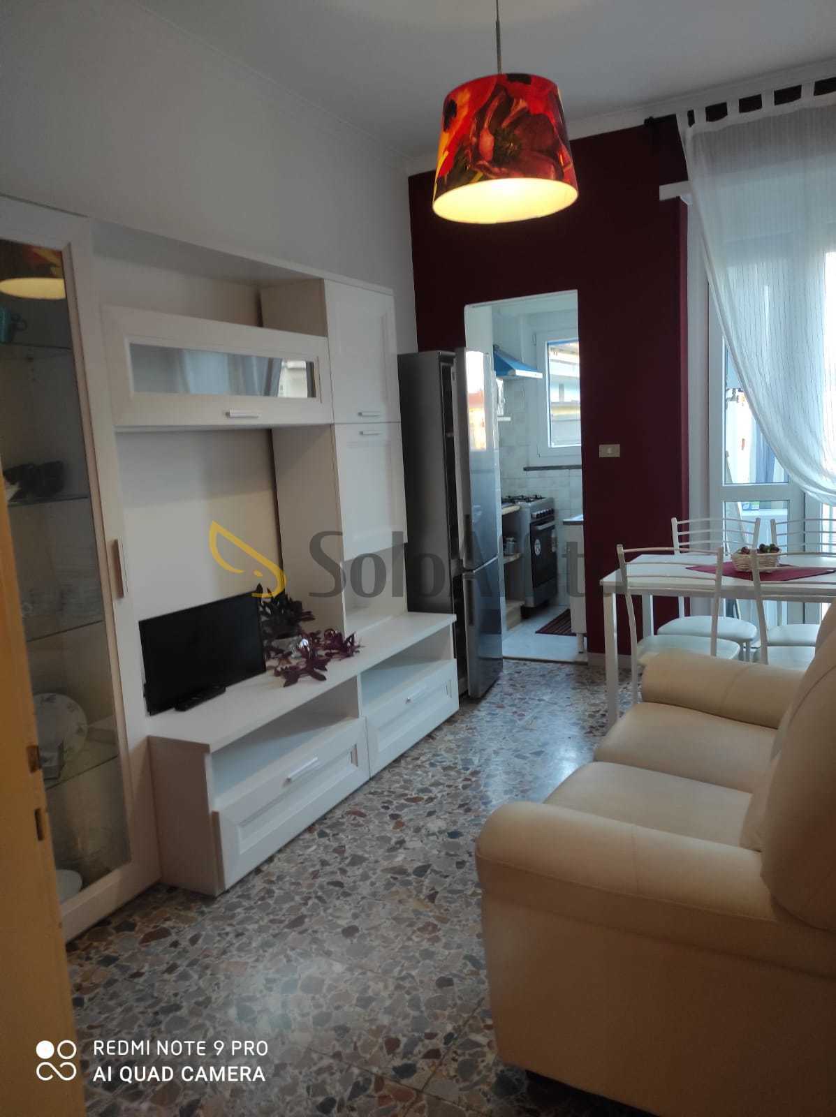 L'immobile risulta particolarmente luminoso e ben arieggiato e si compone di: ingresso, soggiorno con angolo cottura separato, due ampie camere (entrambe arredate con due letti singoli ciascuna, scrivanie, armadi), servizio ristrutturato con doccia e finestra, ripostiglio, due balconi, soffitta e cantina.