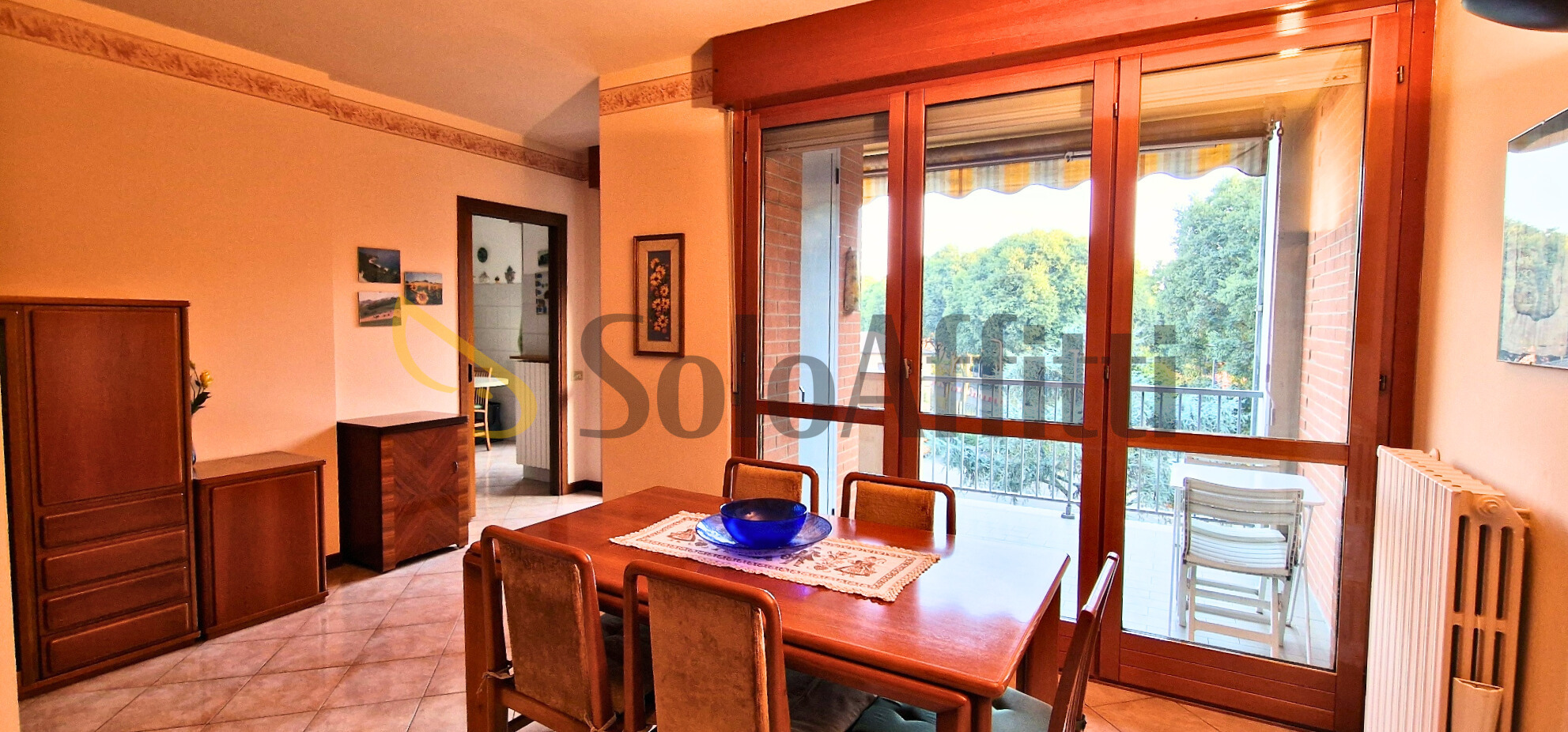 Ampio trilocale con due bagni e box contratto transitorio max 18 mesi In contesto residenziale tranquillo e ben curato, con area giochi condominiale, proponiamo in locazione transitoria un ampio trilocale di grande metratura, libero subito e pronto da abitare.
