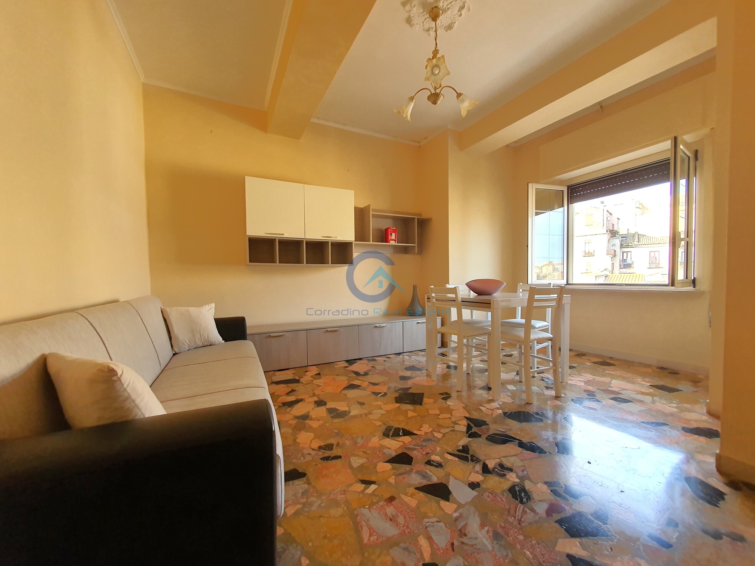 A Catanzaro in pieno Centro Storico a pochi metri dal corso Mazzini e dal Tribunale, appartamento arredato posto al quarto piano in condominio signorile munito di ascensore, composto da: ingresso, soggiorno, cucina abitabile, due comode camere da letto, bagno con vasca e un balcone.