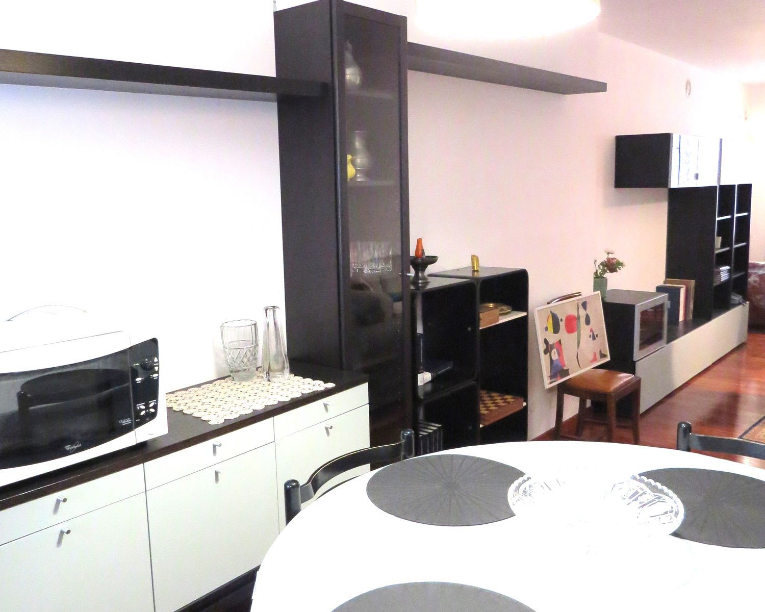 L'ingresso conduce a una zona living, completa di uno spazio studiolo ideale per lavorare da casa. La sala da pranzo e il cucinotto sono arredati con gusto e dotati di tutti i comfort, inclusi lavatrice e lavastoviglie.