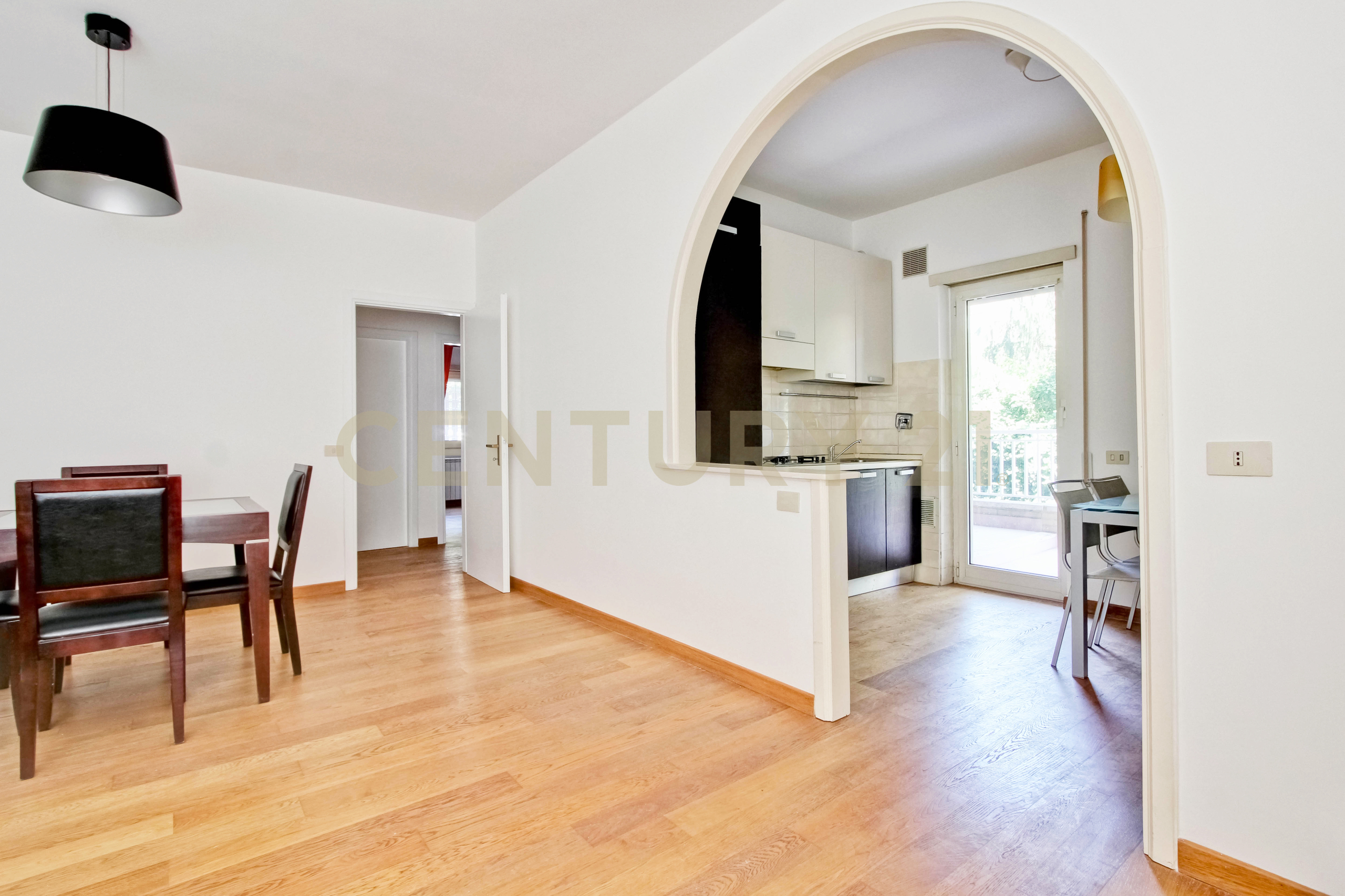 Gli ambienti sono ben distribuiti e luminosi, con affacci gradevoli sul verde condominiale.