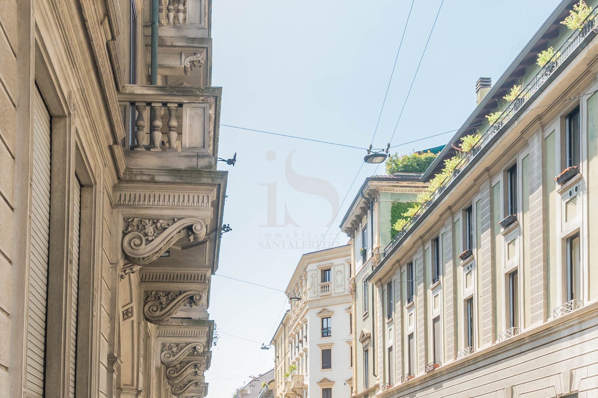 Affitto Milano Via Bellini Palazzo Epoca Prestigioso appartamento Nel cuore di Milano proponiamo un'elegante abitazione di 130 mq situata al primo piano di uno straordinario palazzo d'epoca in Via Vincenzo Bellini 10. Questo edificio storico offre un'atmosfera esclusiva e raffinata, grazie al servizio di portineria e agli splendidi dettagli architettonici originali.