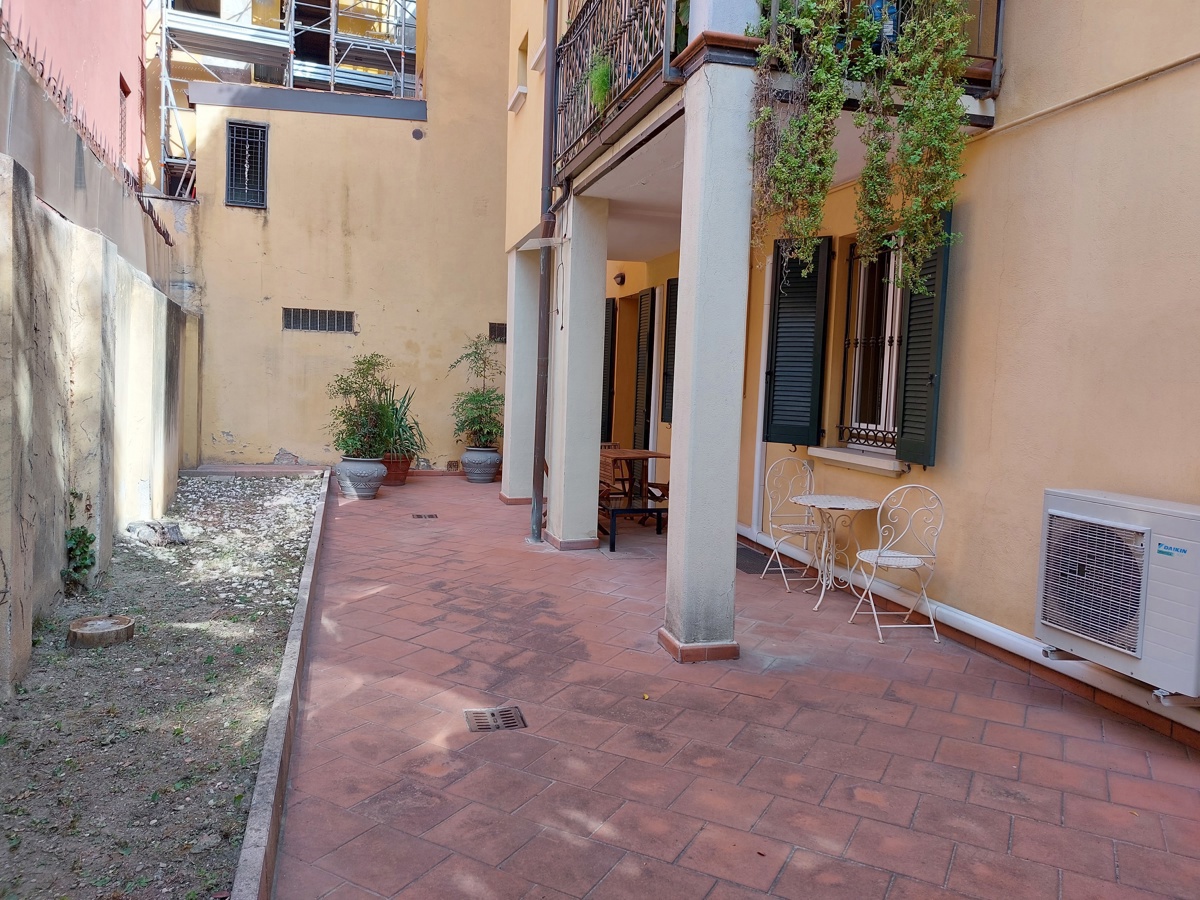 In contesto signorile e in palazzina tipica bolognese ottimamente tenuta, proponiamo in locazione appartamento posto al piano terra, composto da ingresso, sala, cucinotto, due camere da letto, ripostiglio, bagno e corte esclusiva pavimentata.