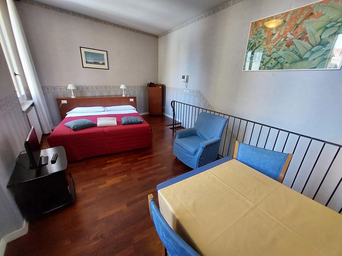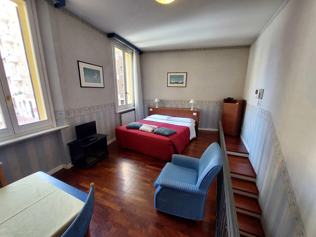 In contesto signorile e in palazzina tipica bolognese ottimamente tenuta, proponiamo in locazione appartamento posto su due livelli con ingresso indipendente e piccola corte privata, utilizzabile come posto moto, composto al piano rialzato da ingresso, camera da letto e bagno.