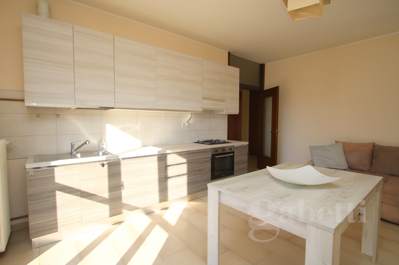 L'appartamento, appena ristrutturato composto da: ingresso, ripostiglio, zona giorno molto luminosa con cucina a vista; disimpegno arredabile, cameretta, ampia camera matrimoniale e bagno con finestra.