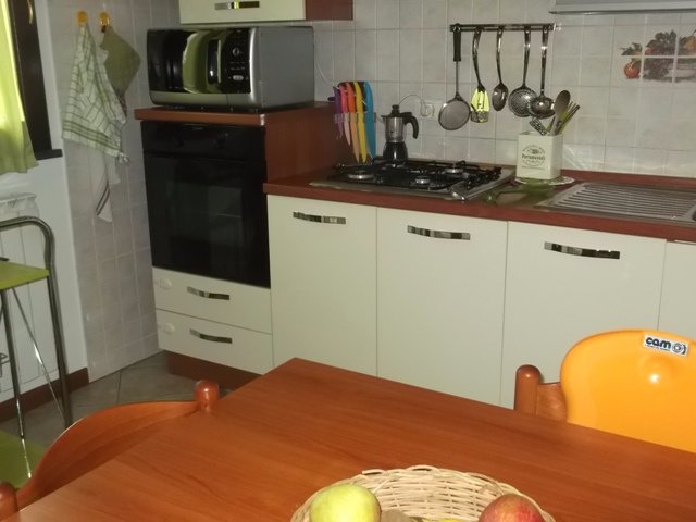 Composto da soggiorno-pranzo con bel balcone, cucinotto, disimpegno, camera matrimoniale, cameretta e bagno.