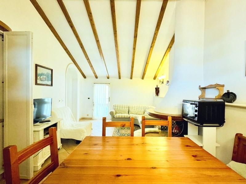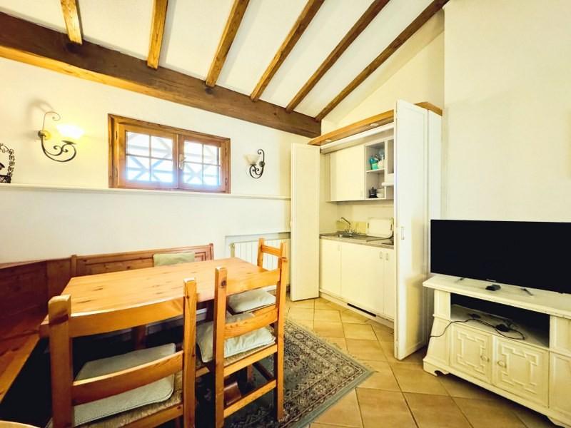 La zona giorno si sviluppa in un unico open space accogliente e ben organizzato, con angolo cottura a scomparsa, tavolo da pranzo e un confortevole salotto con camino, ideale per creare un'atmosfera intima e rilassante.