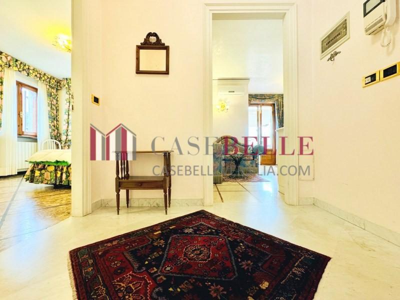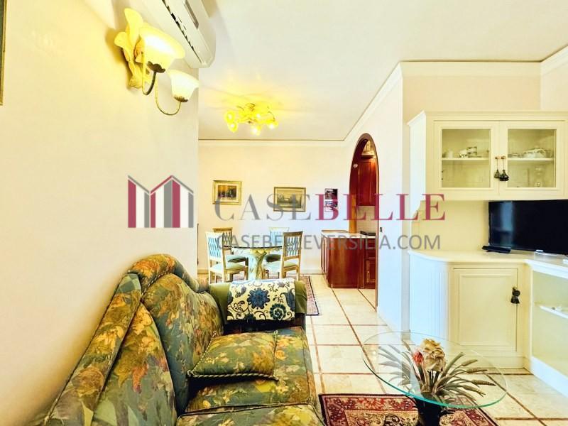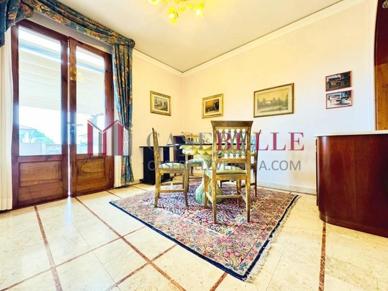 La zona giorno si presenta come un ampio open space con angolo cottura, caratterizzato da uno stile classico ed elegante, con arredi dal gusto tradizionale, pavimenti in marmo con inserti decorativi e un suggestivo arco che separa la cucina dalla zona pranzo.