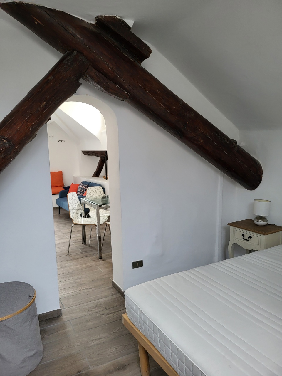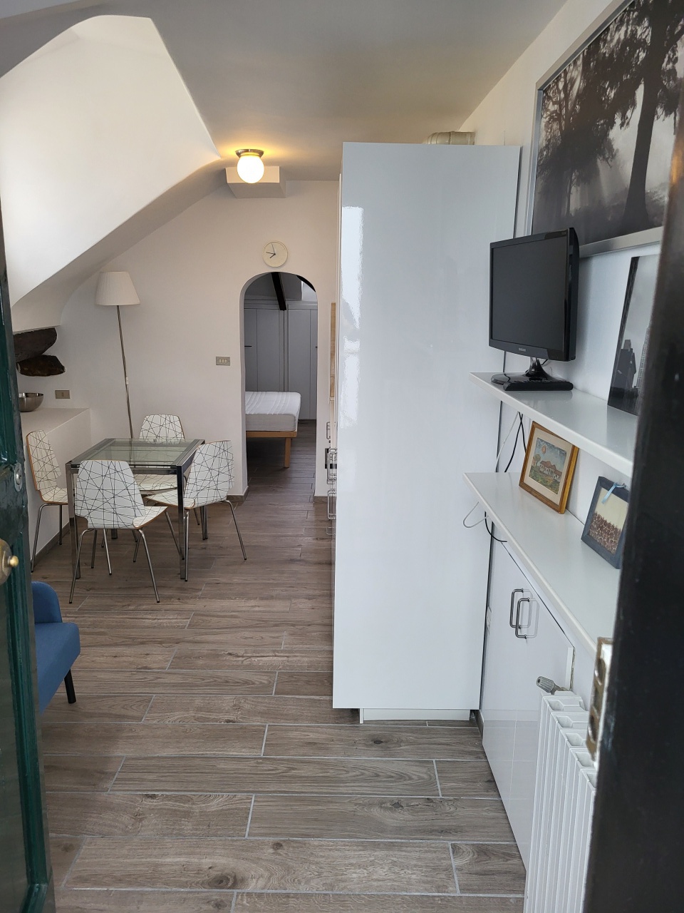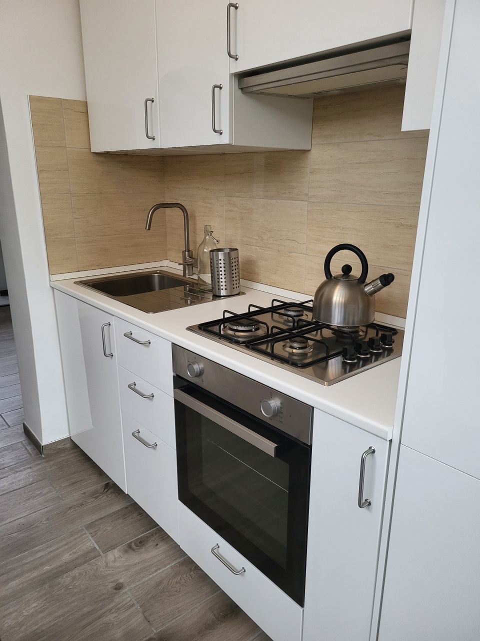 L'appartamento si compone di un soggiorno d'ingresso con angolo cottura attrezzato con elettrodomestici, una camera matrimoniale e un bagno con doccia.