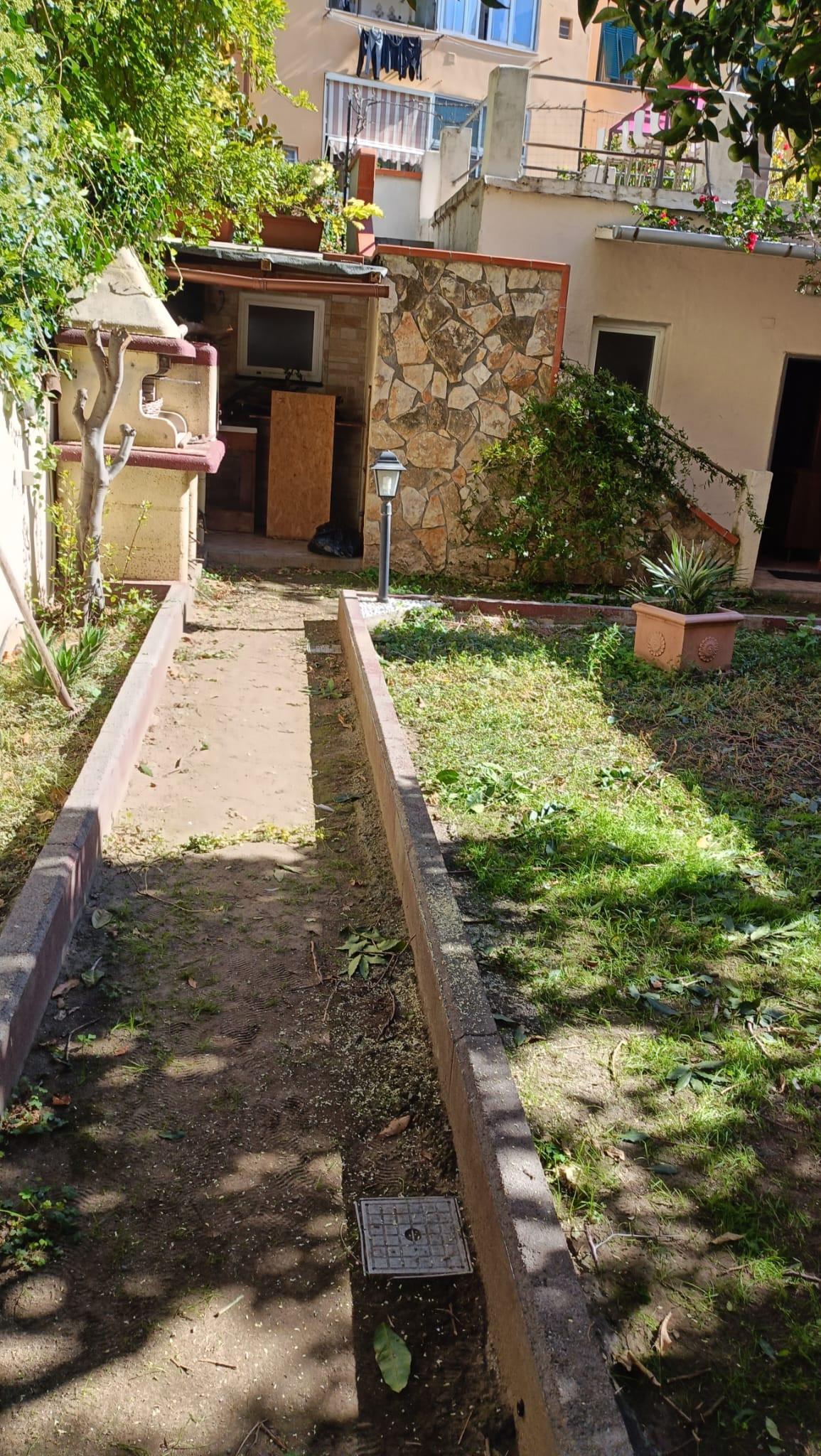 Giardino di circa 100 mq con depandance composta da un ampio vano con caminetto e bagno.