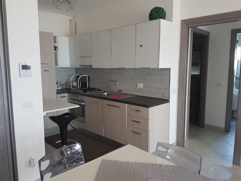 ROSETO DEGLI ABRUZZI PRIMA FILA MARE AFFITTASI PER USO TURISTICO GRAZIOSO ED ELEGANTE APPARTAMENTO CON VISTA MARE FINEMENTE ARREDATO Appartamento ottimamente arredato fronte mare al piano primo di una palazzina di nuova costruzione servito di ascensore composto da: ingresso/soggiorno con angolo cottura e divano letto matrimoniale, due camere letto, bagno, terrazzo abitabile con vista mare e garage al piano terra.