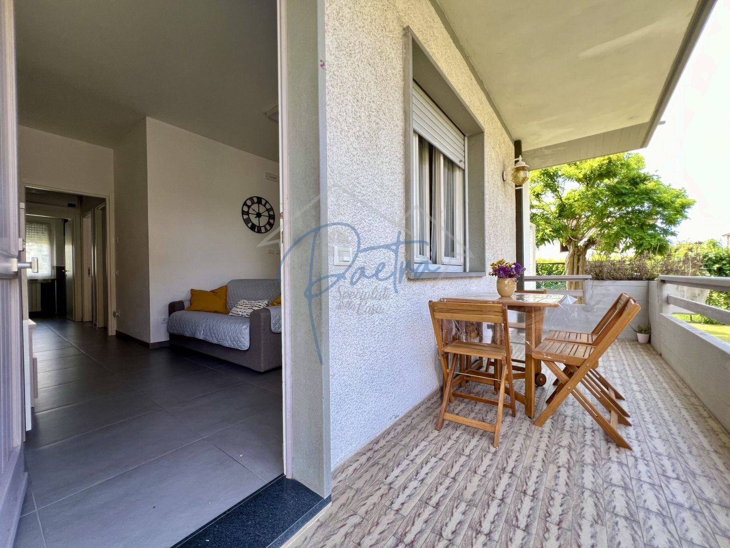 L'appartamento gode di un posto macchina scoperto assegnato e di balcone attrezzato con tavolino e sedie.